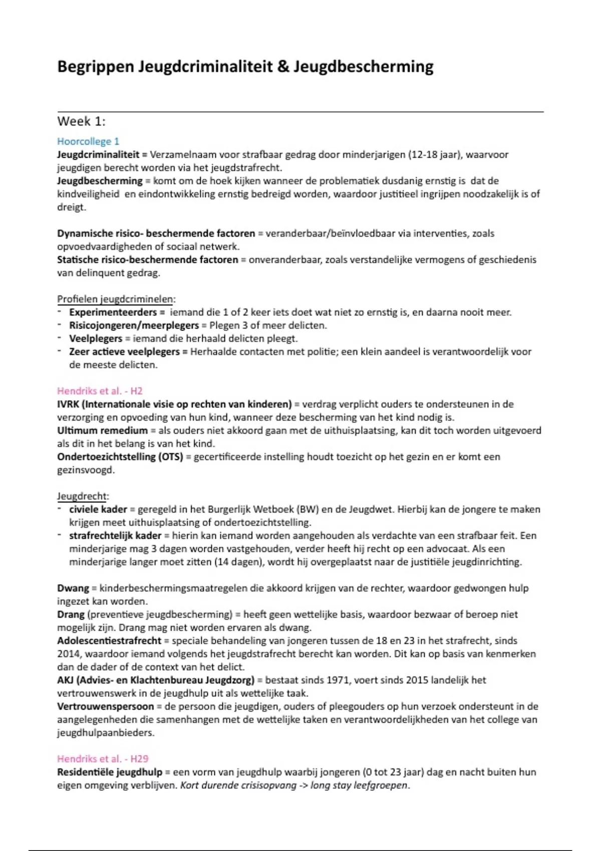 Begrippen Jeugdcriminaliteit & Jeugdbescherming