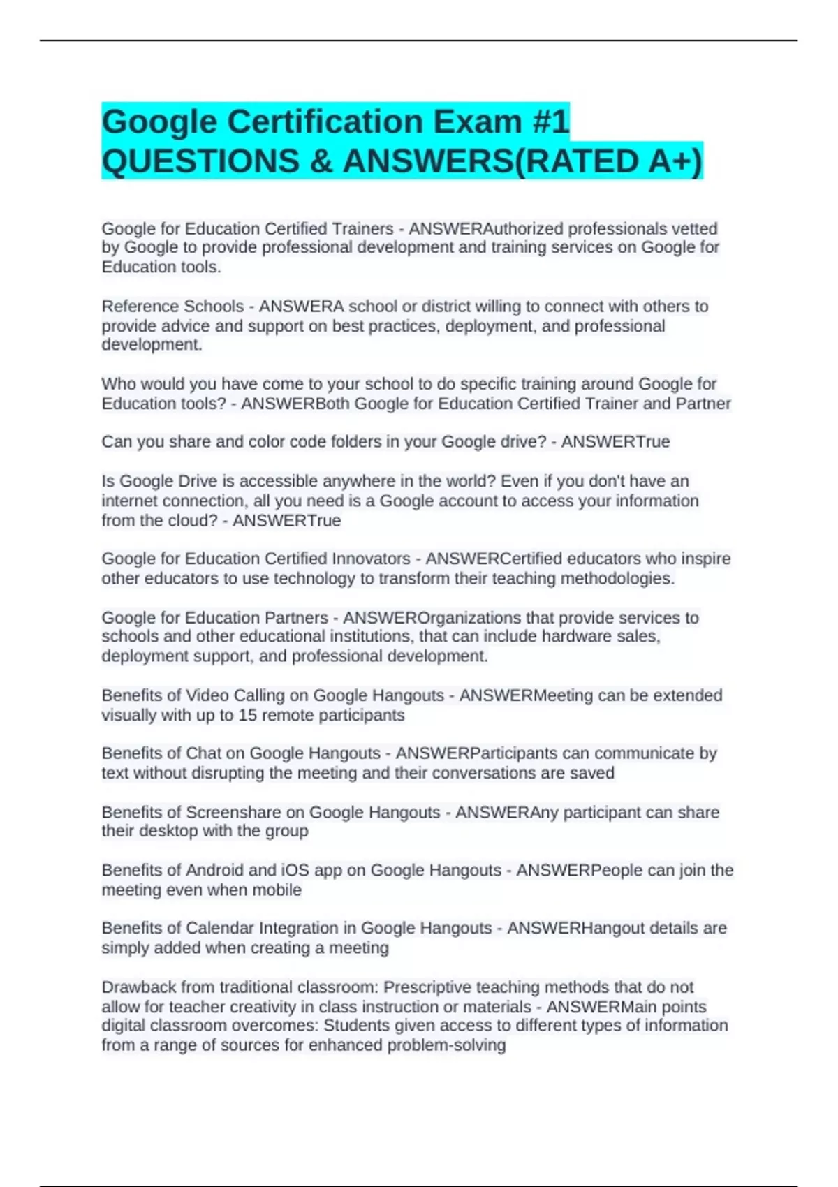 Google for Education Certified Trainers - ANSWERAuthorized professionals vetted