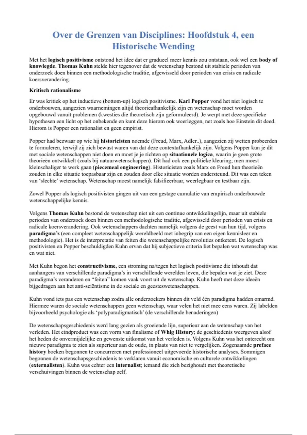 Met Kuhn begon het constructivisme, een stroming na/tegen het logisch positivisme die inhoudt dat