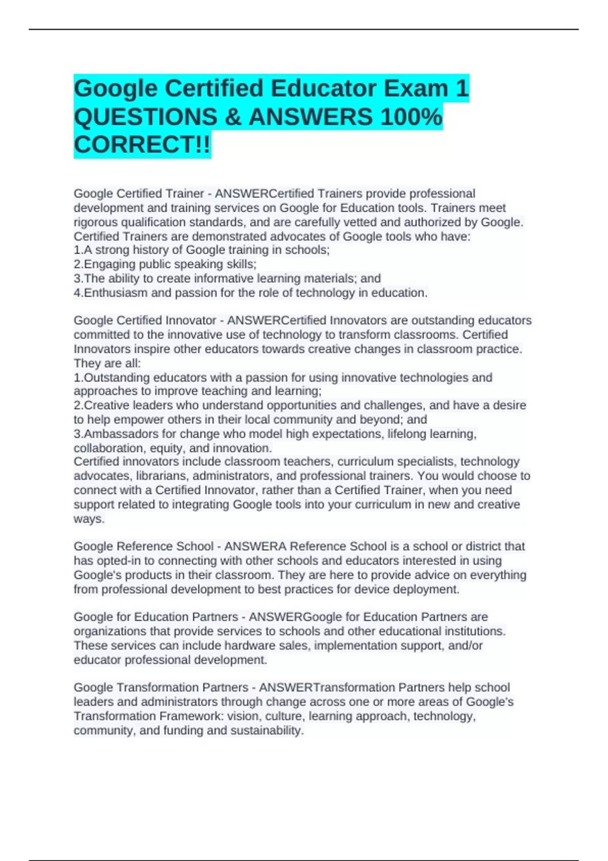 Google Certified Trainer - ANSWERCertified Trainers provide professional