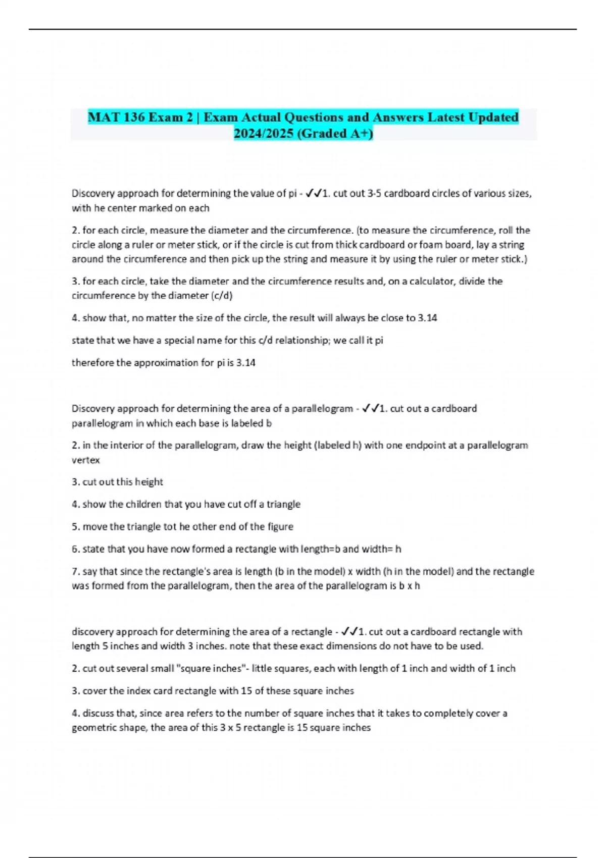 MAT 136 Exam 2 | Exam Actual Questions and Answers