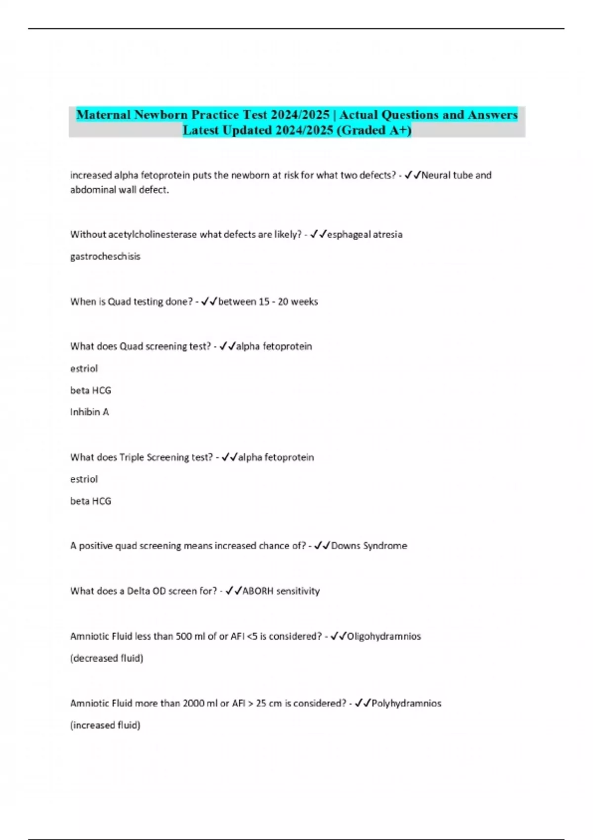 Maternal Newborn Practice Test 2024/2025 | Actual Questions and Answers
