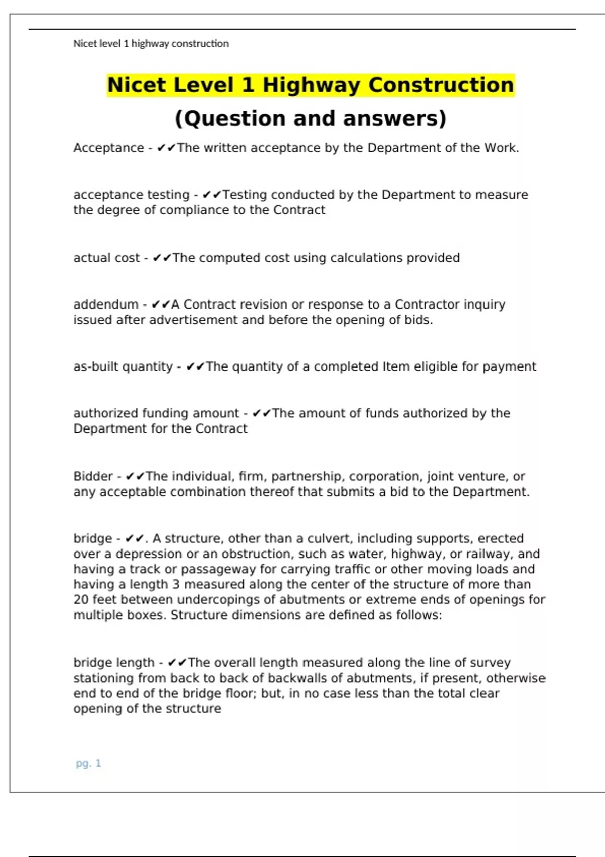 Nicet Level 1 Highway Construction