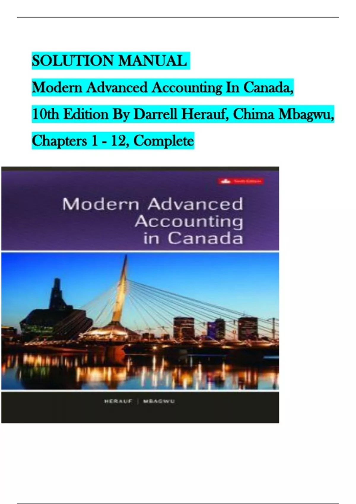 SOLUTION MANUAL Modern Advanced Accounting In Canada, 10th Edition By Darrell Herauf, Chima Mbagwu, Chapters 1 - 12, Complete