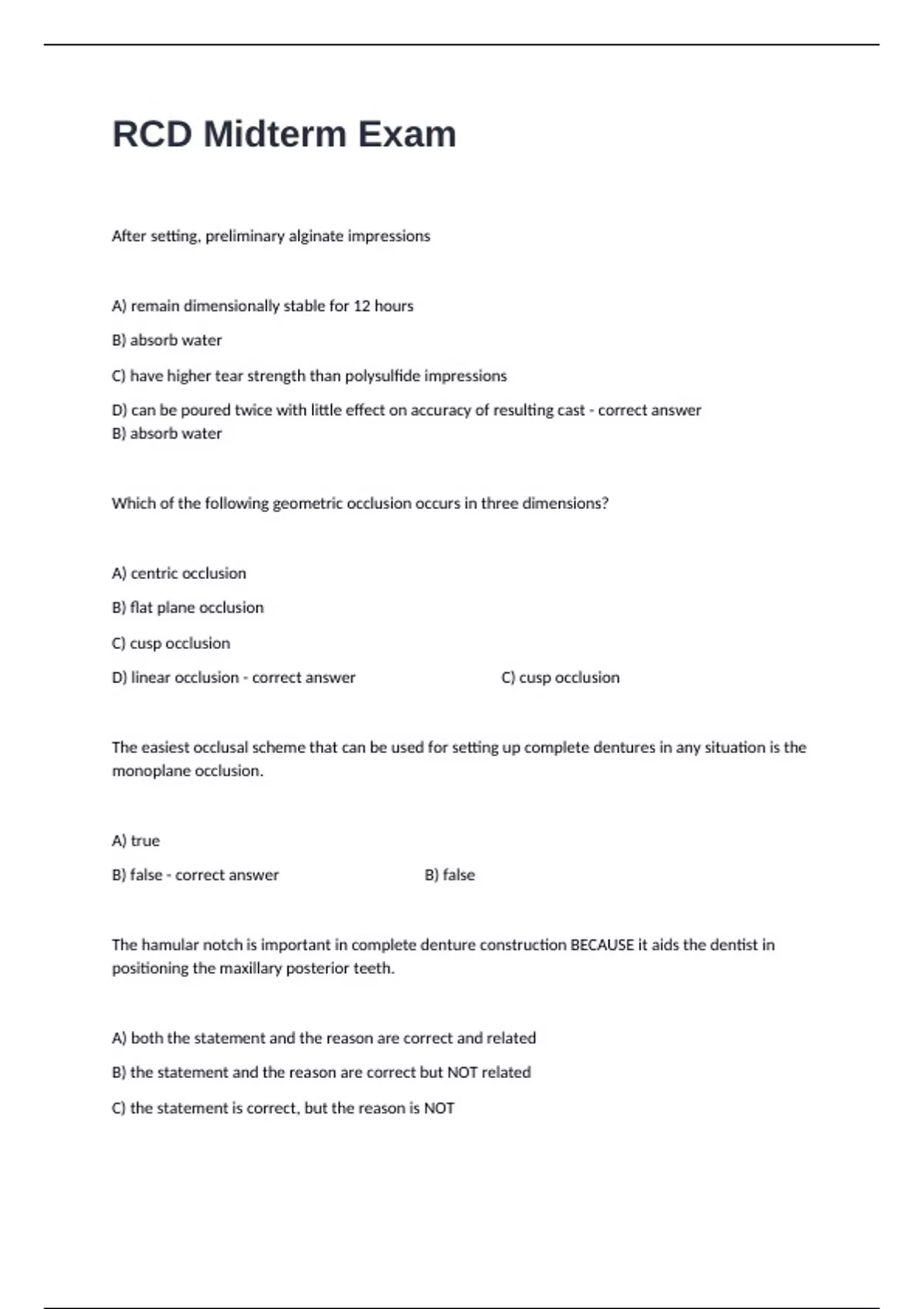 D) linear occlusion - correct answer C) cusp occlusion