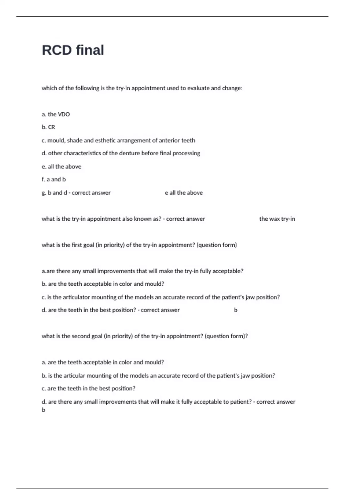 RCD final Exam Complete Questions With Actual Detailed Correct Answers.