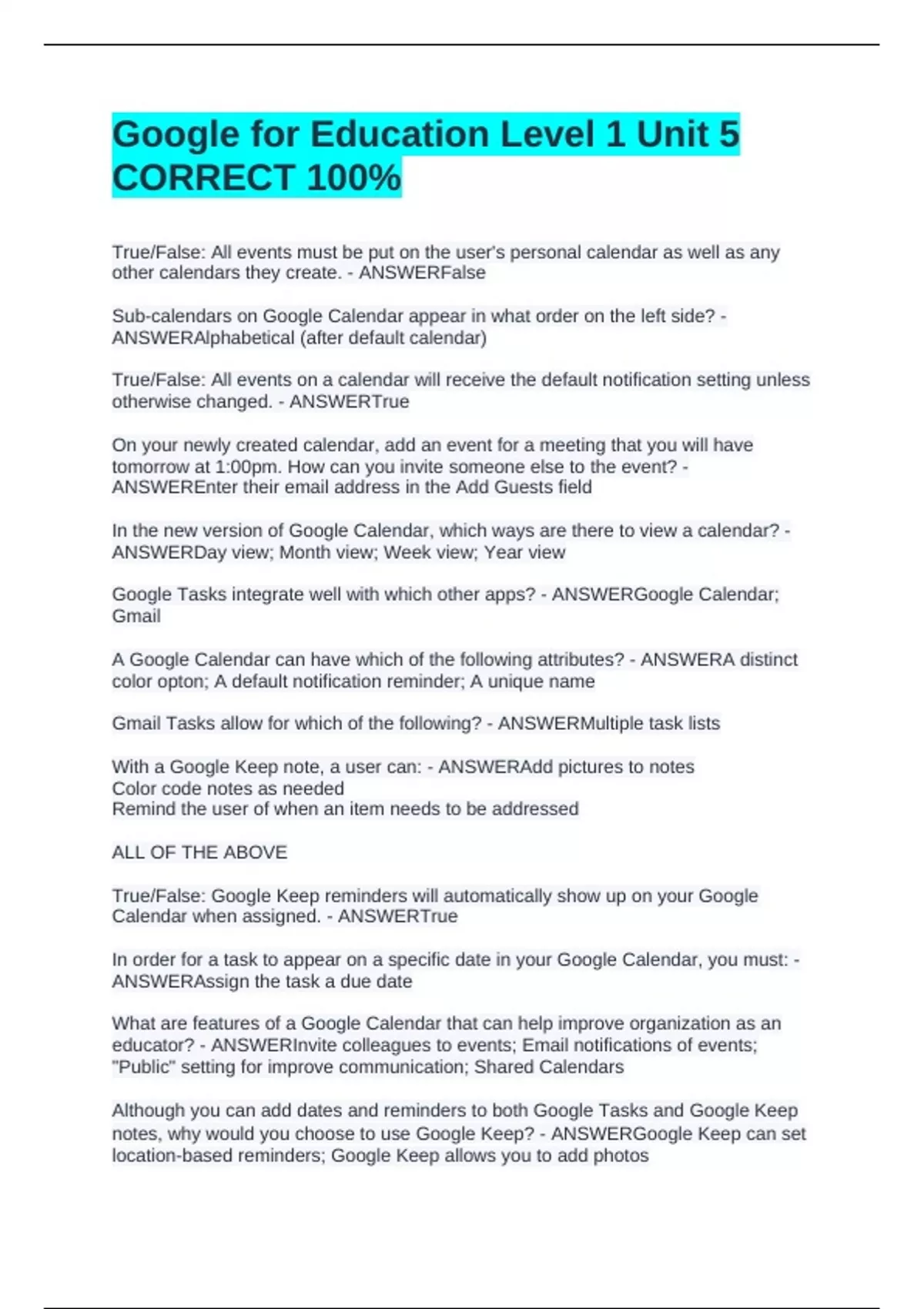 Google for Education Level 1 Unit 5 CORRECT 100%