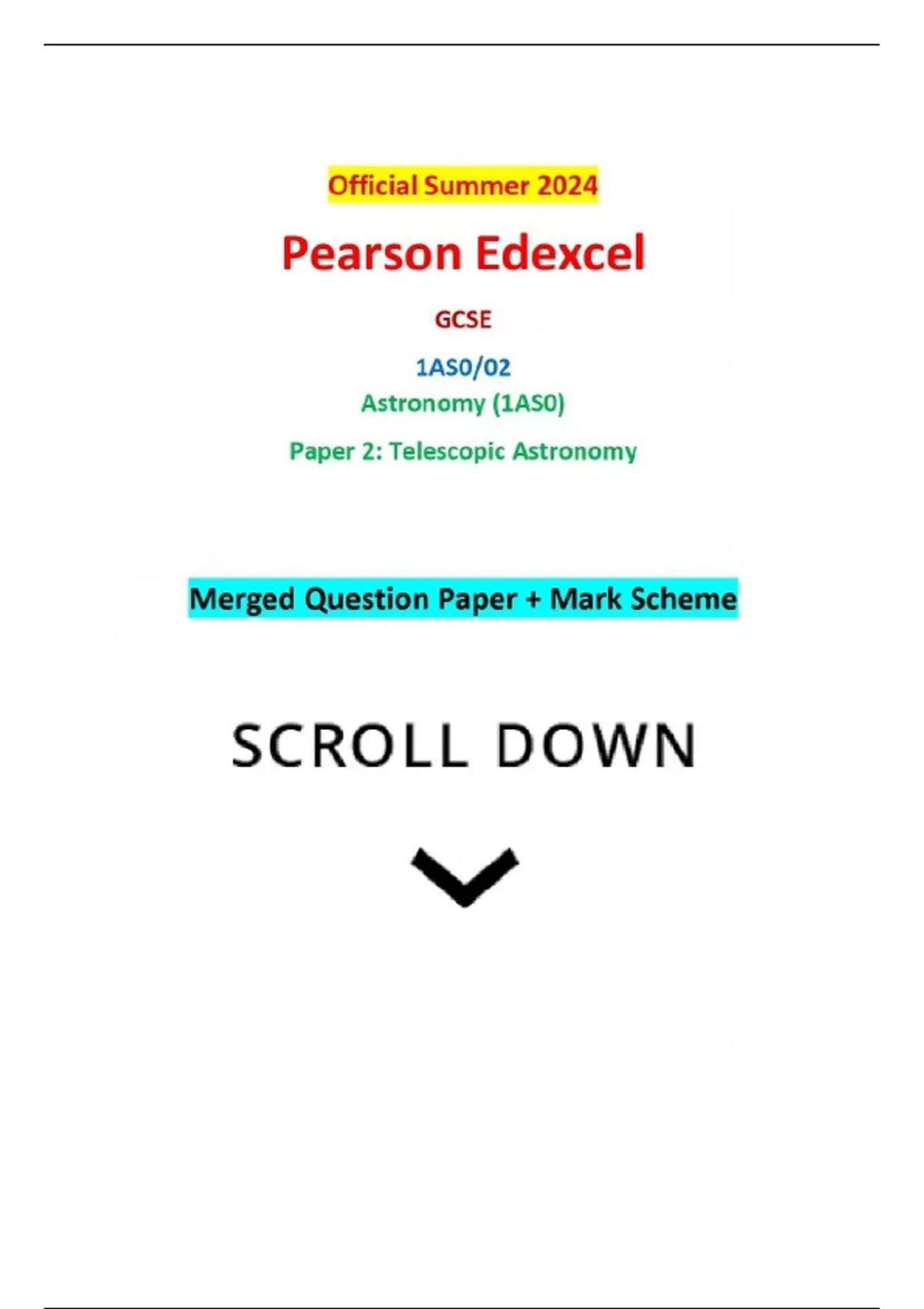 Official Summer 2024 Pearson Edexcel GCSE 1AS0/02 Astronomy (1AS0) Paper 2: Telescopic Astronomy Merged Question Paper + Mark SchemeOfficial Summer 2024 Pearson Edexcel GCSE 1AS0/02 Astronomy (1AS0) Paper 2: Telescopic Astronomy Merged Question Paper + Ma
