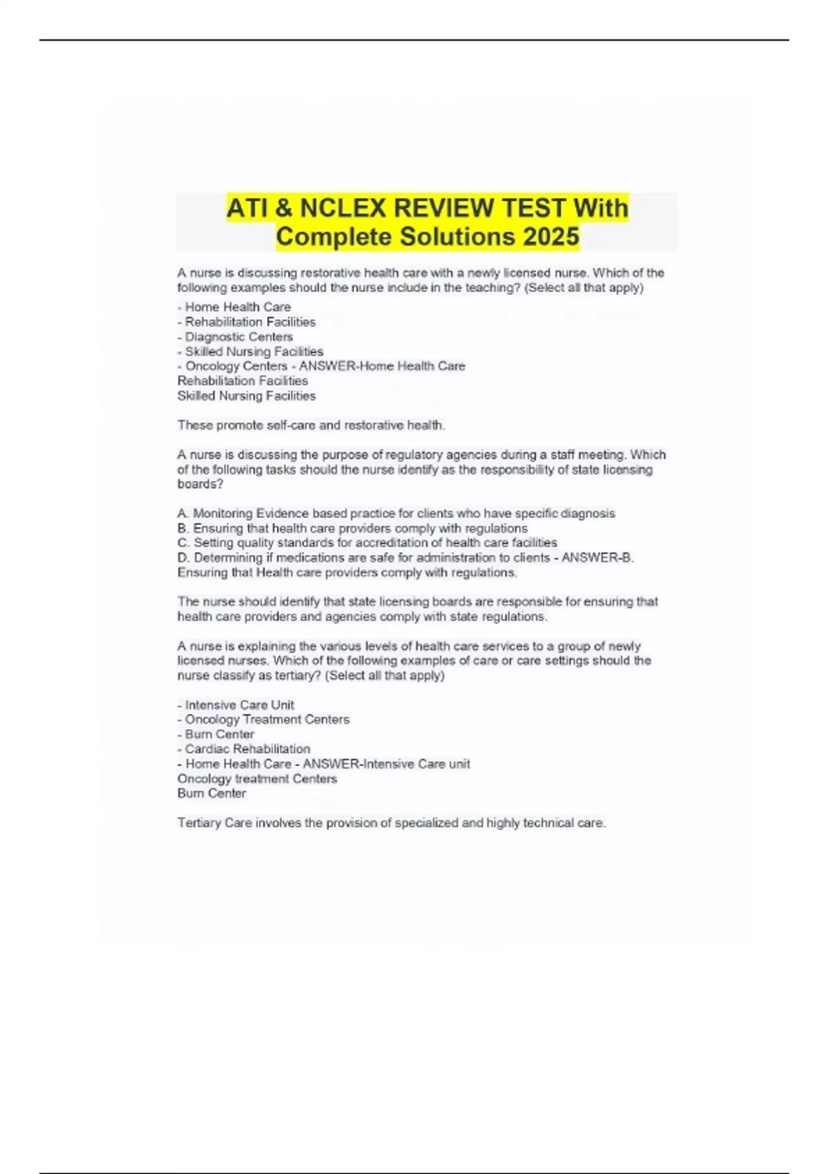 ATI & NCLEX REVIEW TEST With Complete Solutions 2025