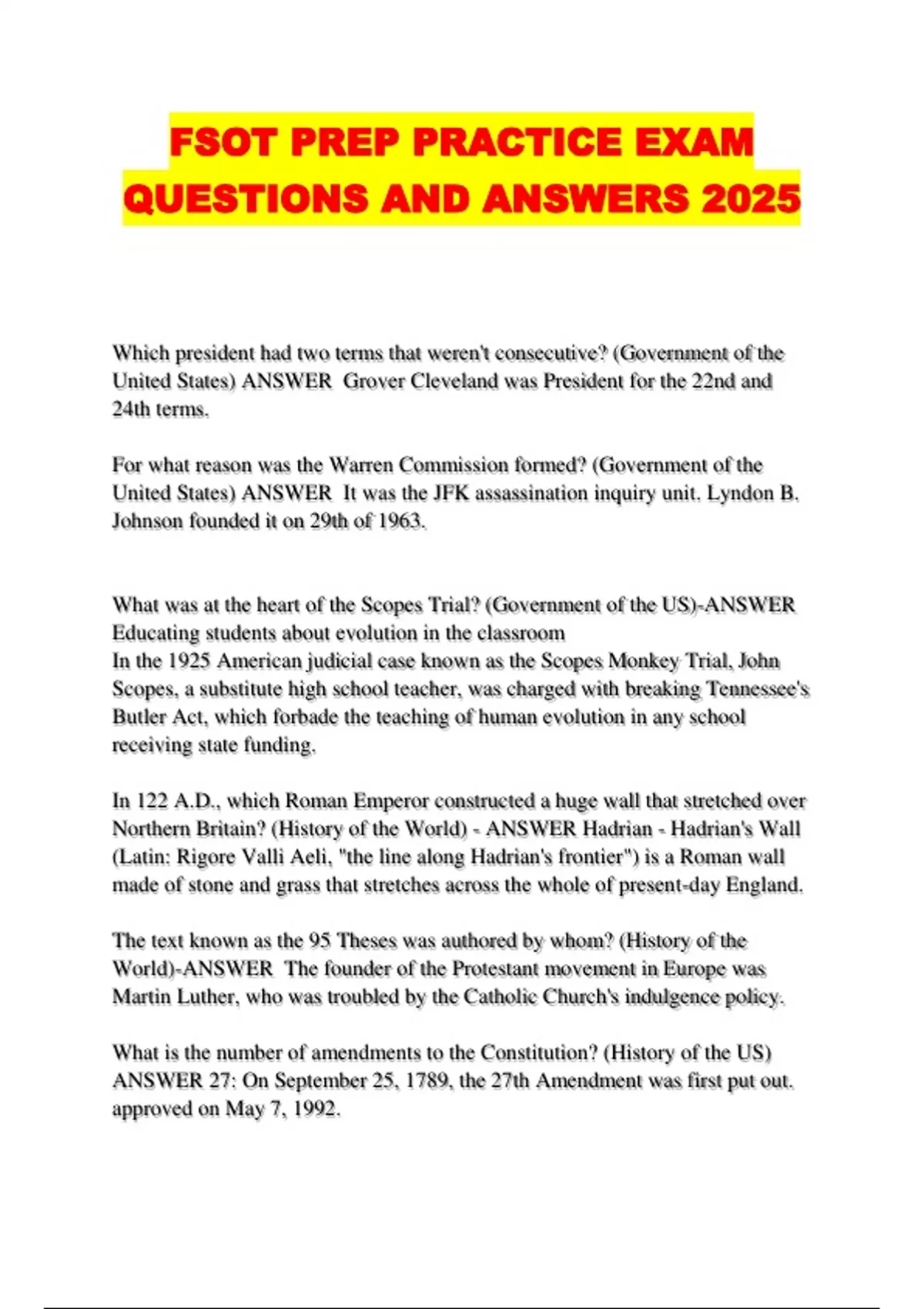 FSOT PREP PRACTICE EXAM QUESTIONS AND ANSWERS 2025...