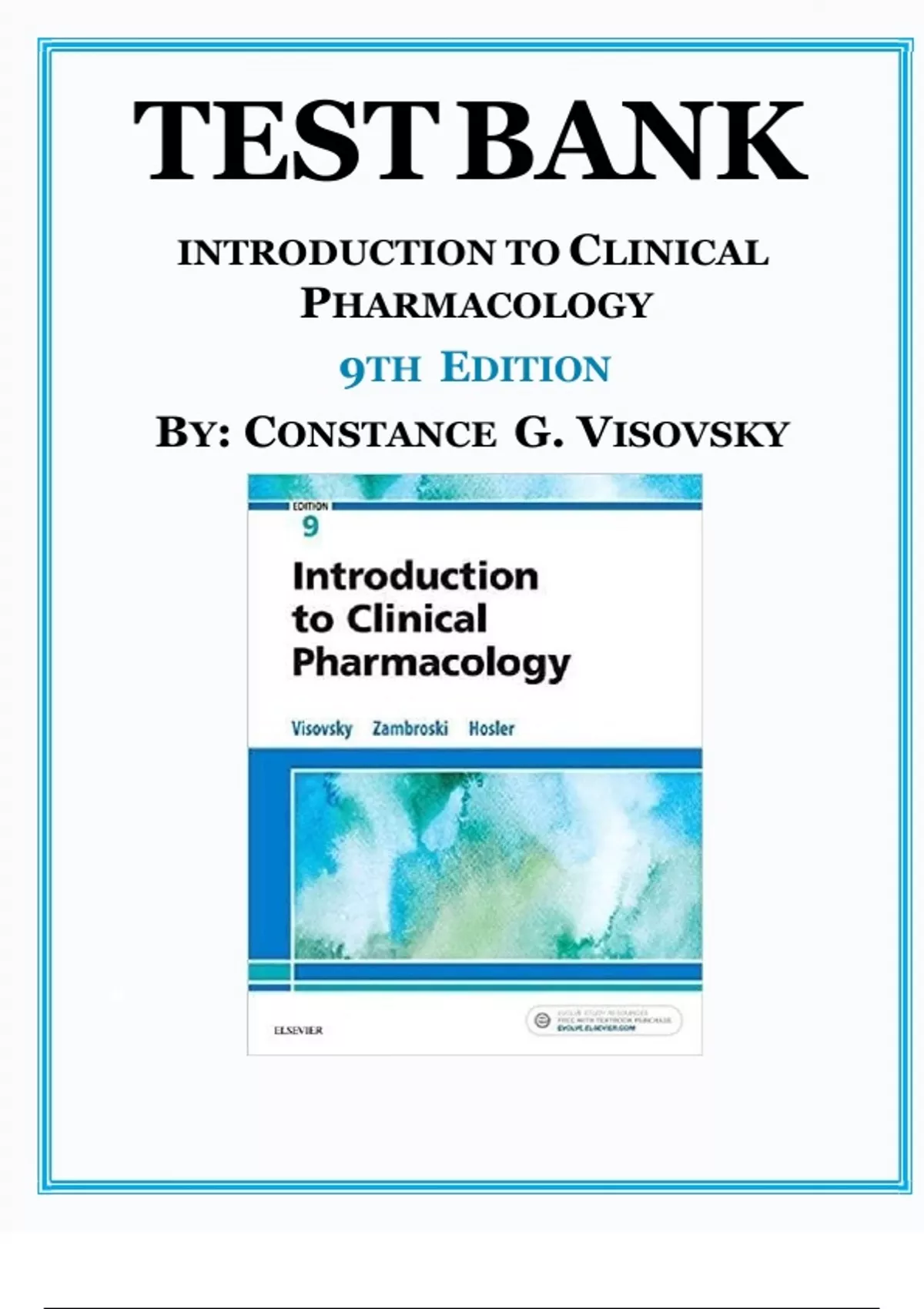 TEST BANK FOR INTRODUCTION TO CLINICAL PHARMACOLOGY 9TH EDITION BY CONSTANCE G VISOVSKY| ALL 19 CHAPTERS COVERED | COMPLETE GUIDE