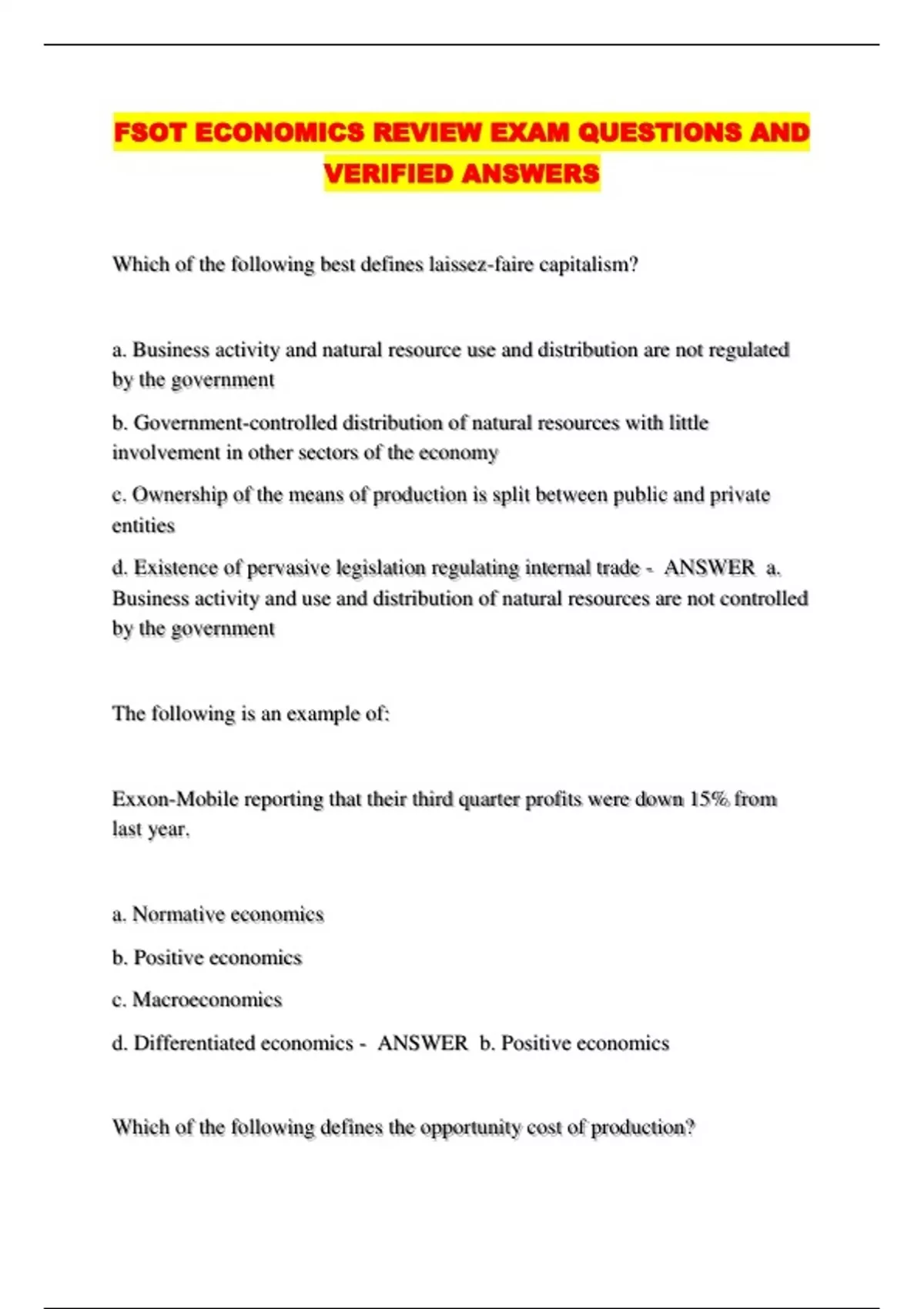 FSOT ECONOMICS REVIEW EXAM QUESTIONS AND VERIFIED ANSWERS