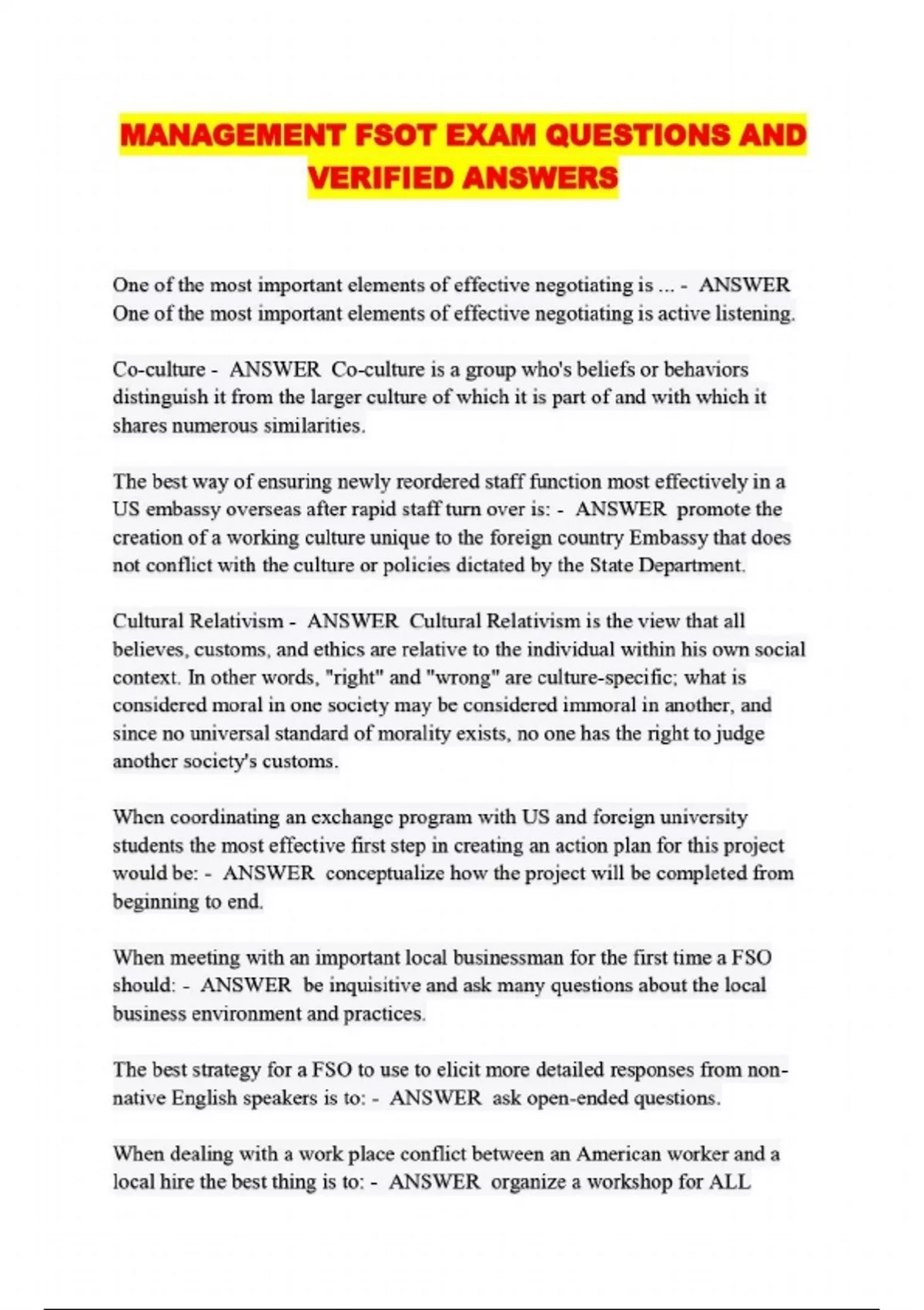 MANAGEMENT FSOT EXAM QUESTIONS AND VERIFIED ANSWERS....