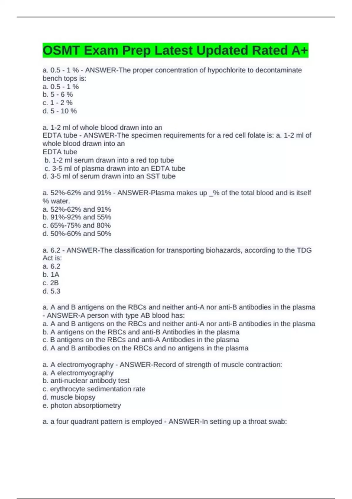 OSMT Exam Prep Latest Updated Rated A+