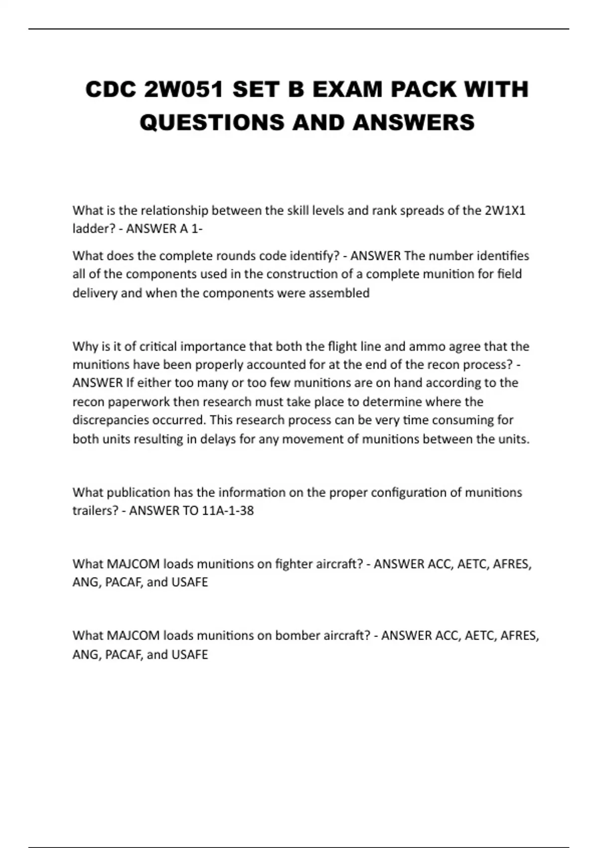 CDC 2W051 SET B EXAM PACK WITH QUESTIONS AND ANSWERS