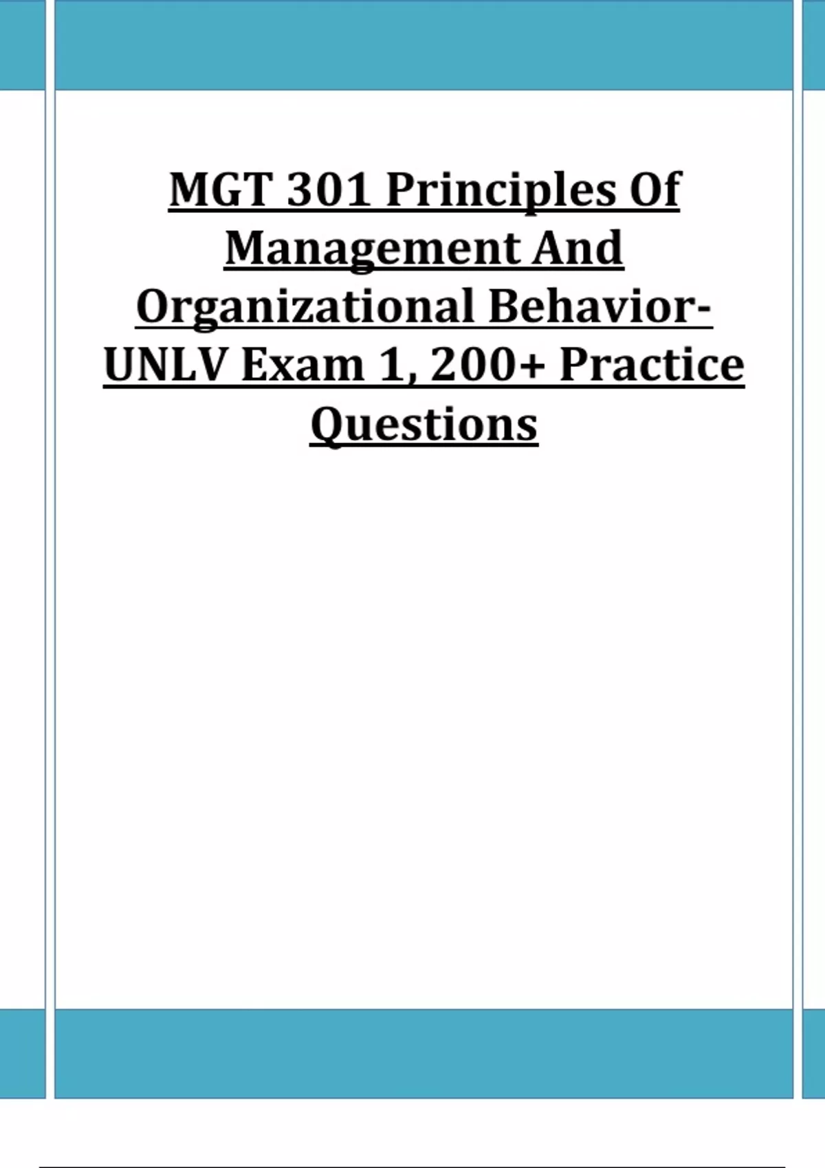MGT 301 Principles Of Management And Organizational BehaviorUNLV Exam 1, 200+ Practice Question