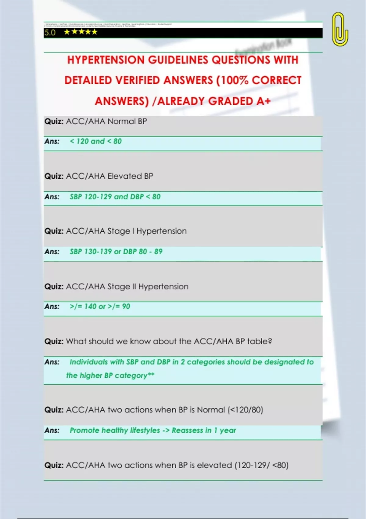 HYPERTENSION GUIDELINES QUESTIONS WITH DETAILED VERIFIED ANSWERS (100% CORRECT ANSWERS) /ALREADY GRADED A+