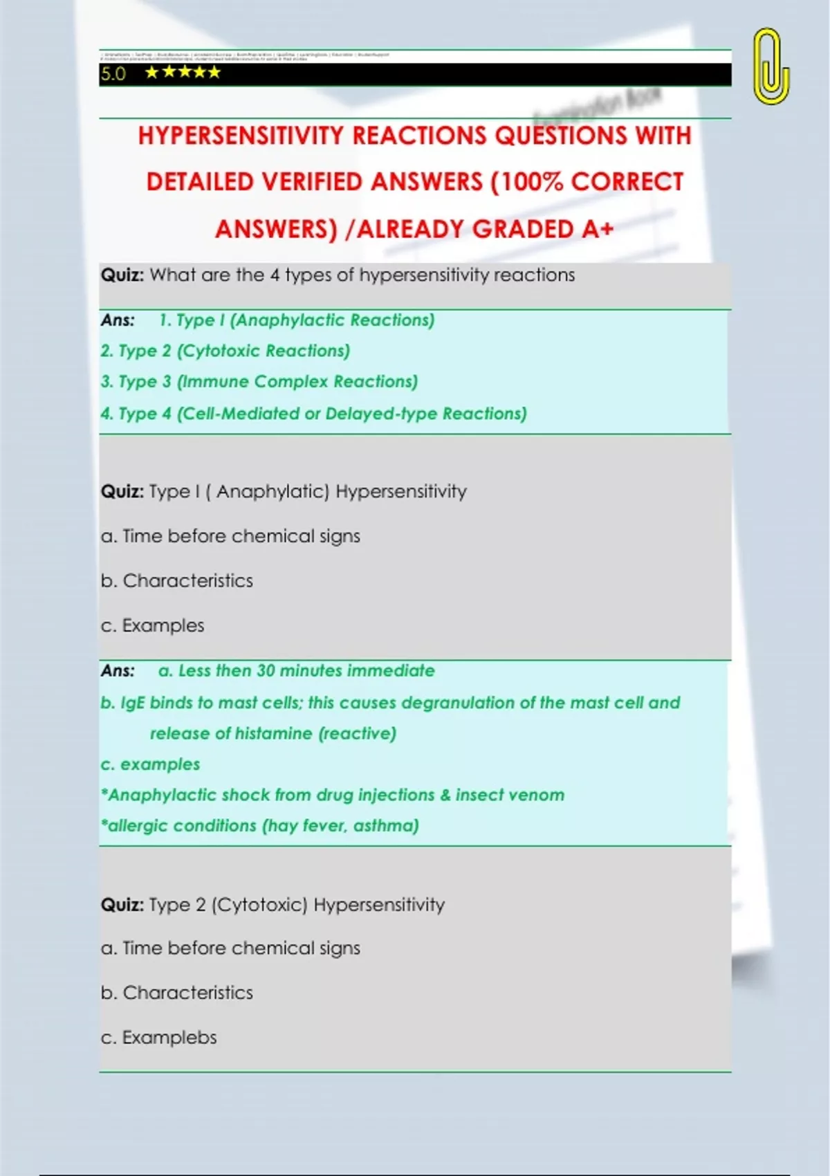 HYPERSENSITIVITY REACTIONS QUESTIONS WITH