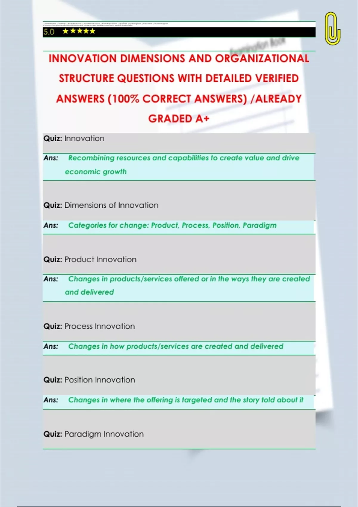 INNOVATION DIMENSIONS AND ORGANIZATIONAL STRUCTURE QUESTIONS WITH DETAILED VERIFIED ANSWERS (100% CORRECT ANSWERS) /ALREADY GRADED A+