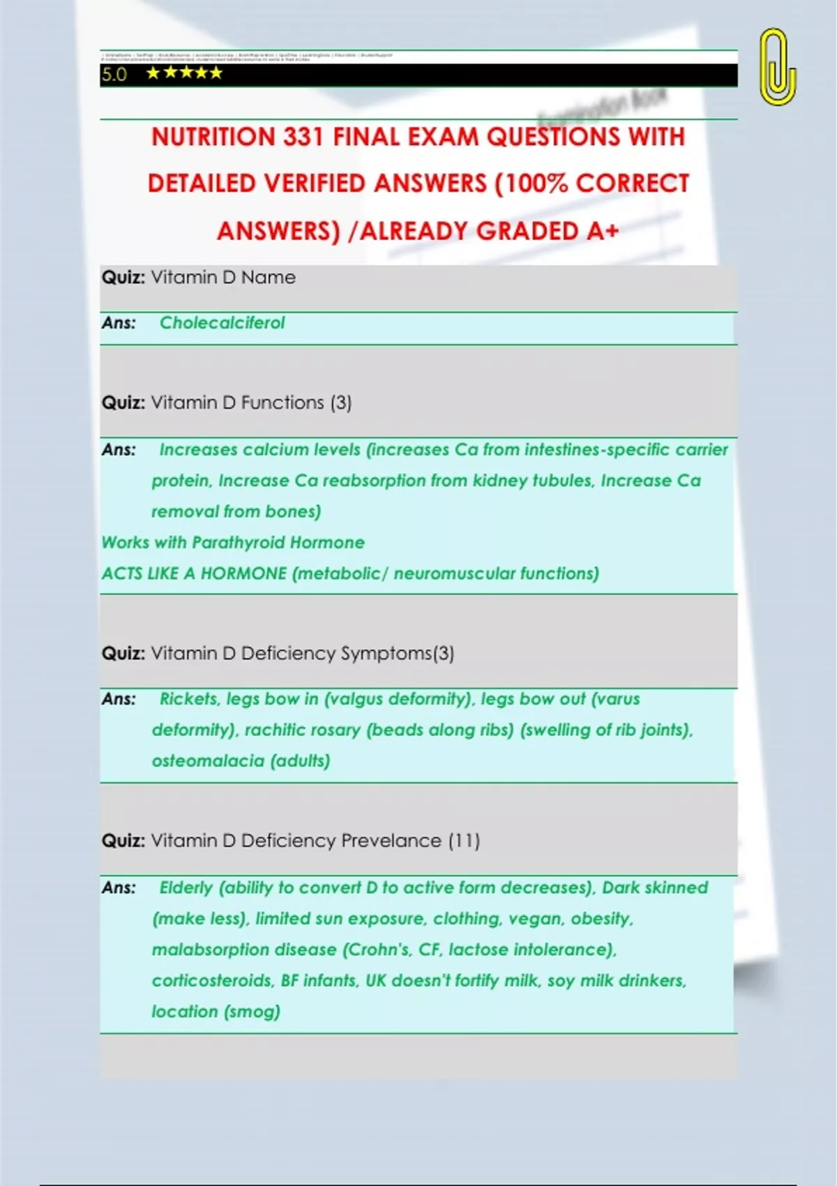 NUTRITION 331 FINAL EXAM QUESTIONS WITH DETAILED VERIFIED ANSWERS (100% CORRECT ANSWERS) /ALREADY GRADED ANUTRITION 331 FINAL EXAM QUESTIONS WITH DETAILED VERIFIED ANSWERS (100% CORRECT ANSWERS) /ALREADY GRADED ANUTRITION 331 FINAL EXAM QUESTIONS WITH DETAILED VERIFIED ANSWERS (100% CORRECT ANSWERS) /ALREADY GRADED ANUTRITION 331 FINAL EXAM QUESTIONS WITH DETAILED VERIFIED ANSWERS (100% CORRECT ANSWERS) /ALREADY GRADED ANUTRITION 331 FINAL EXAM QUESTIONS WITH DETAILED VERIFIED ANSWERS (100% CORRECT ANSWERS) /ALREADY GRADED ANUTRITION 331 FINAL EXAM QUESTIONS WITH DETAILED VERIFIED ANSWERS (100% CORRECT ANSWERS) /ALREADY GRADED ANUTRITION 331 FINAL EXAM QUESTIONS WITH DETAILED VERIFIED ANSWERS (100% CORRECT ANSWERS) /ALREADY GRADED A