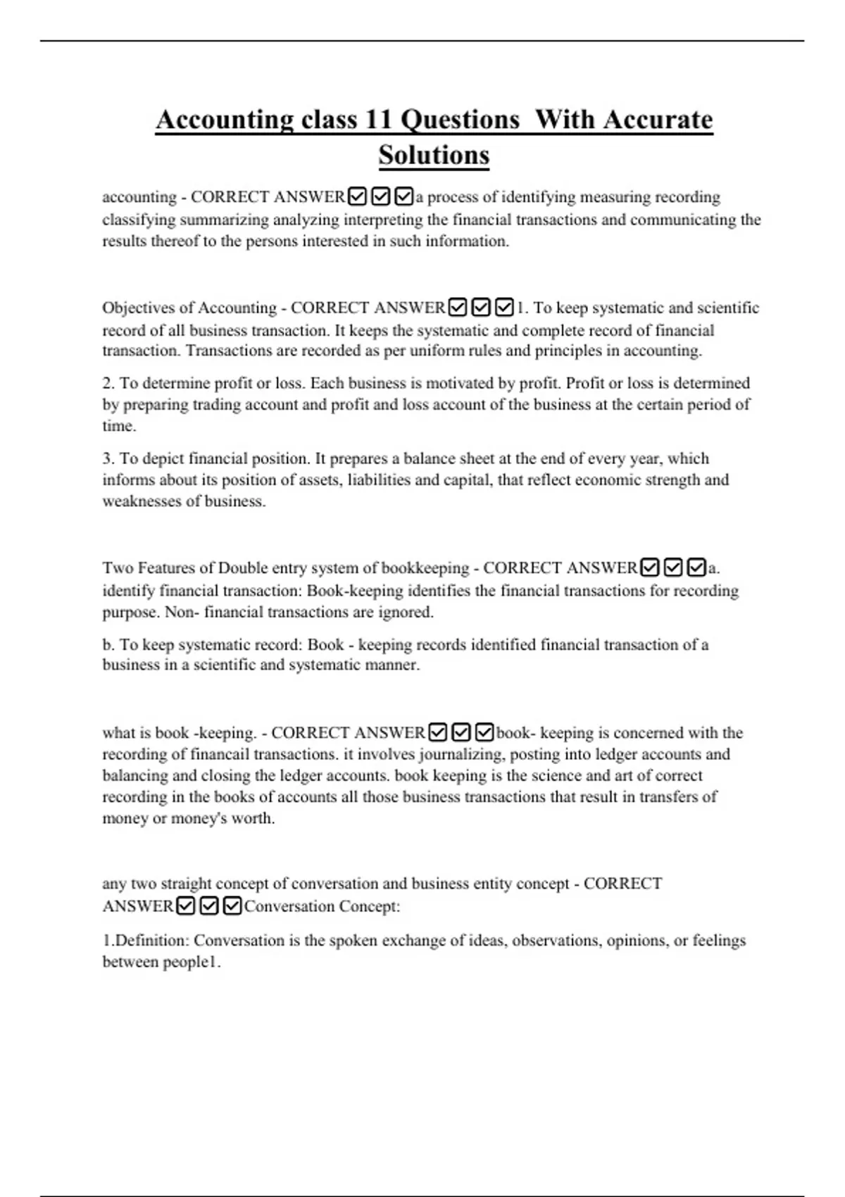 Objectives of Accounting - CORRECT ANSWER✅✅✅1. To keep systematic and scientific