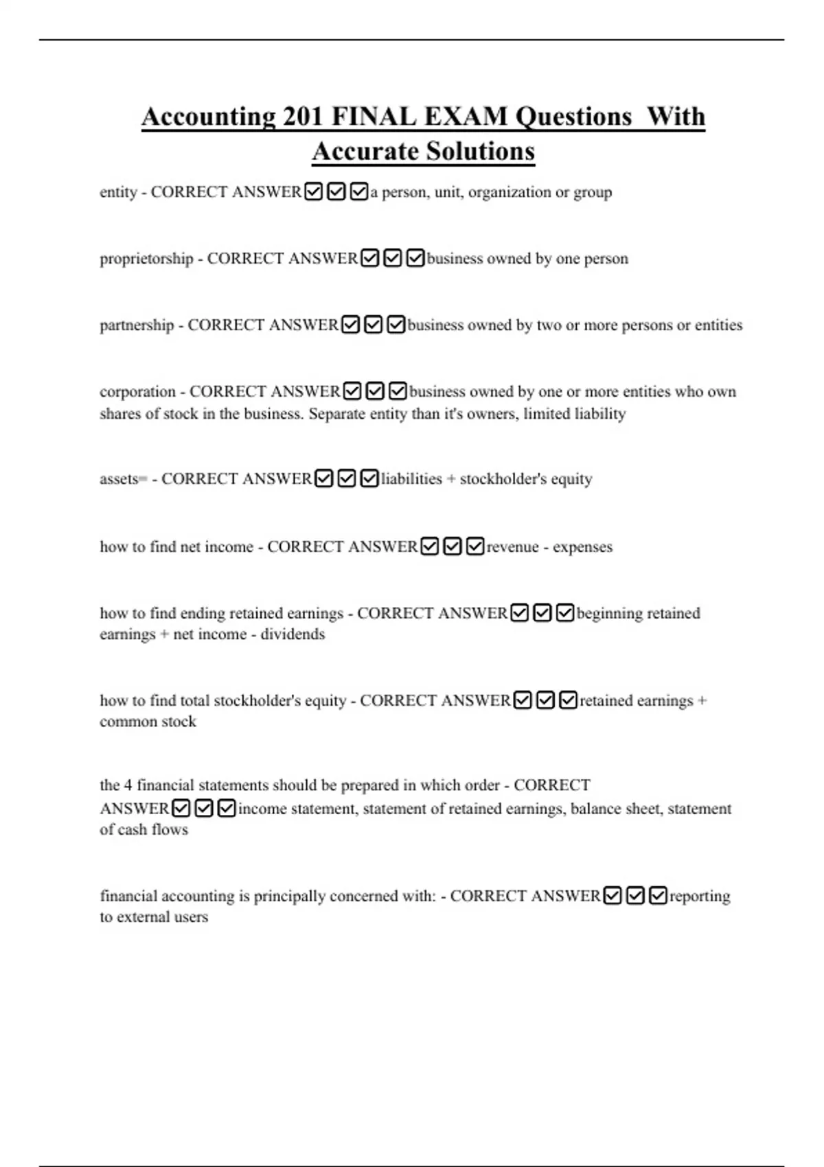 Accounting 201 FINAL EXAM Questions With