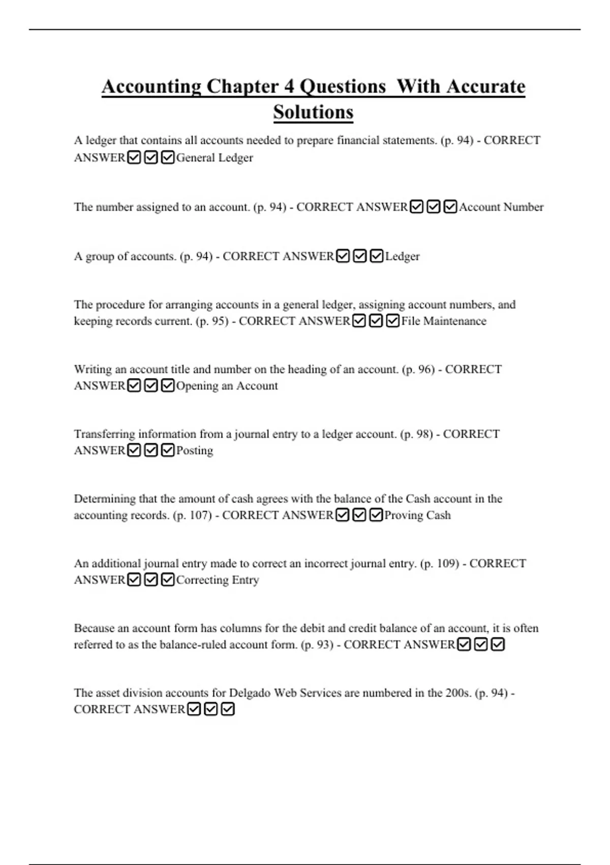 A group of accounts. (p. 94) - CORRECT ANSWER✅✅✅Ledger