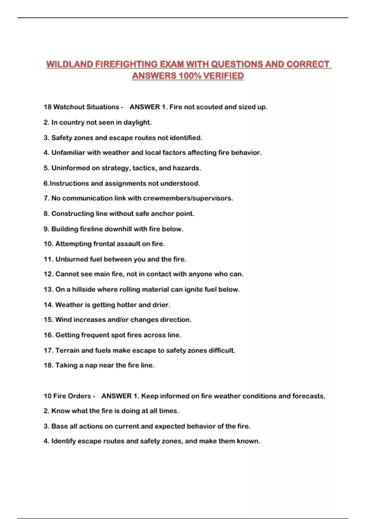WILDLAND FIREFIGHTING EXAM WITH QUESTIONS AND CORRECT