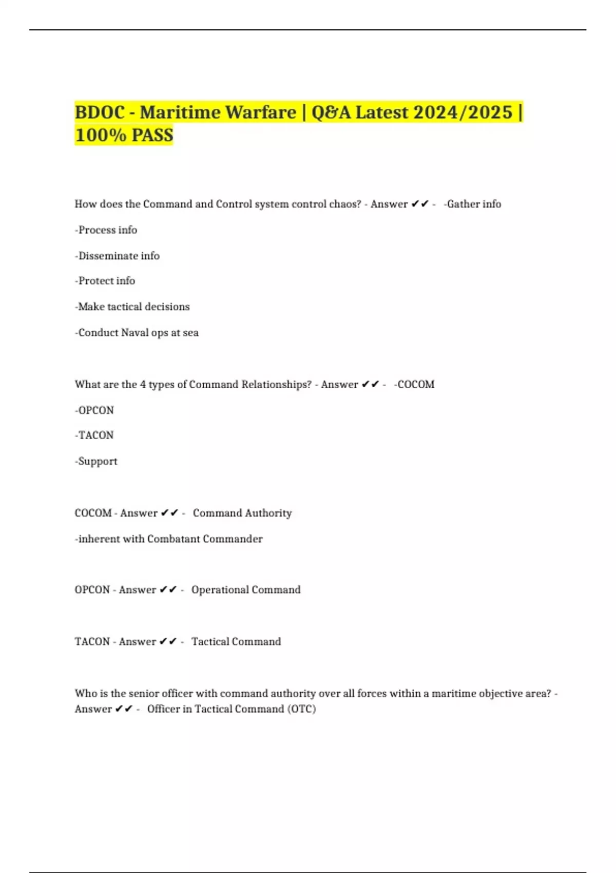 Answer ✔✔ - Officer in Tactical Command (OTC)