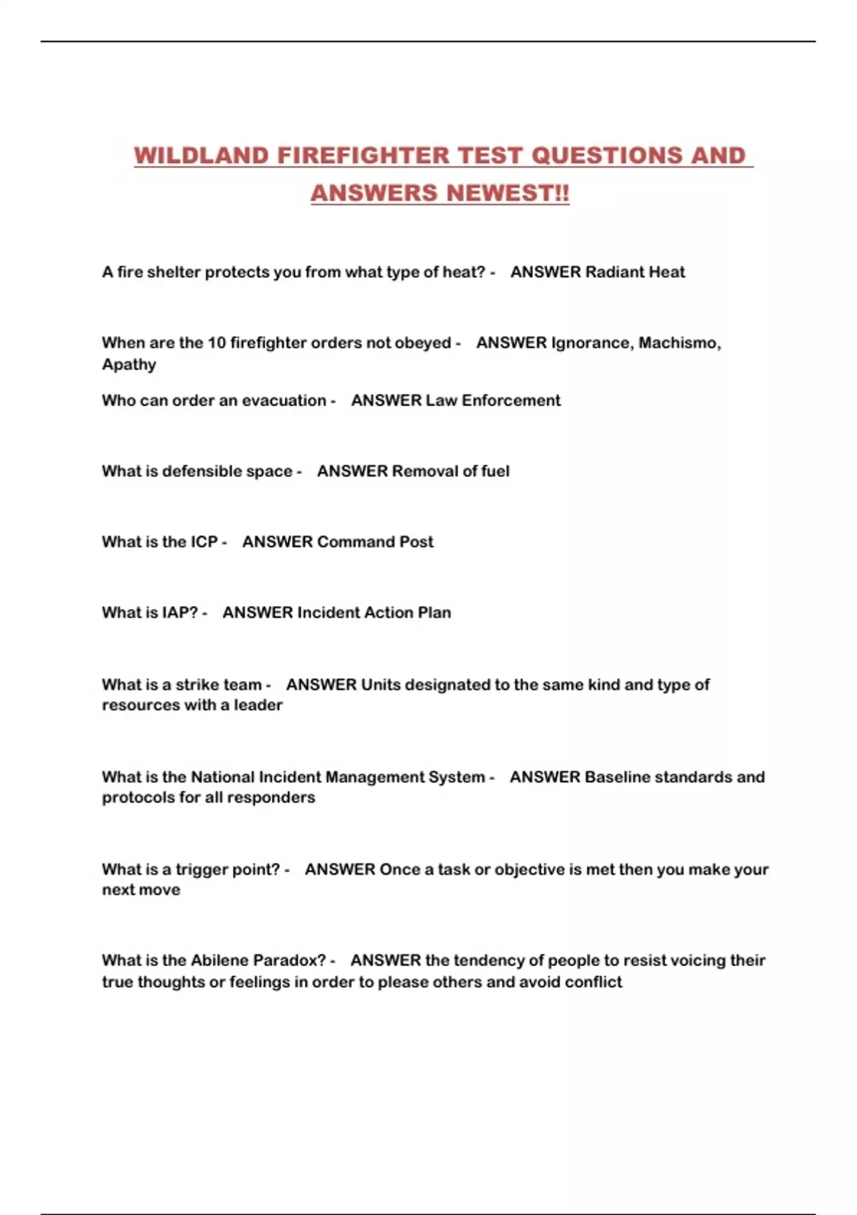 WILDLAND FIREFIGHTER TEST QUESTIONS AND