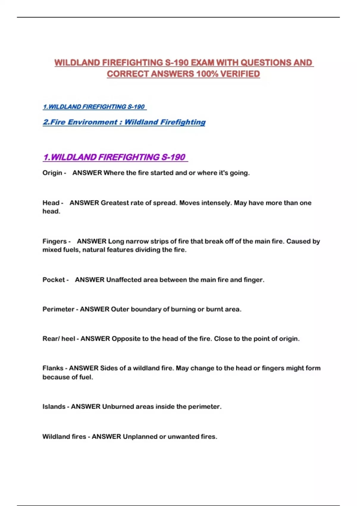 WILDLAND FIREFIGHTING S-190 EXAM WITH QUESTIONS AND