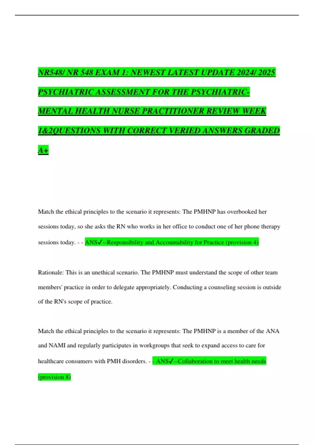 Rationale: This is an unethical scenario. The PMHNP must understand the scope of other team
