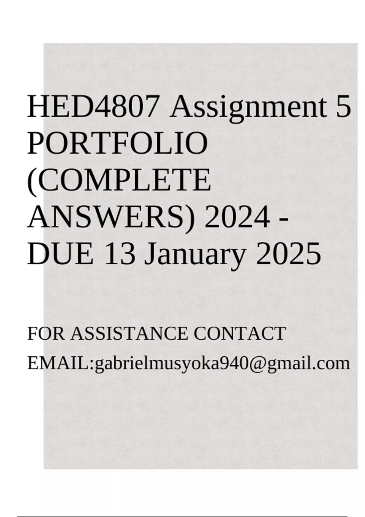 HED4807 Assignment 5 PORTFOLIO (COMPLETE ANSWERS) 2024 - DUE 13 January 2025