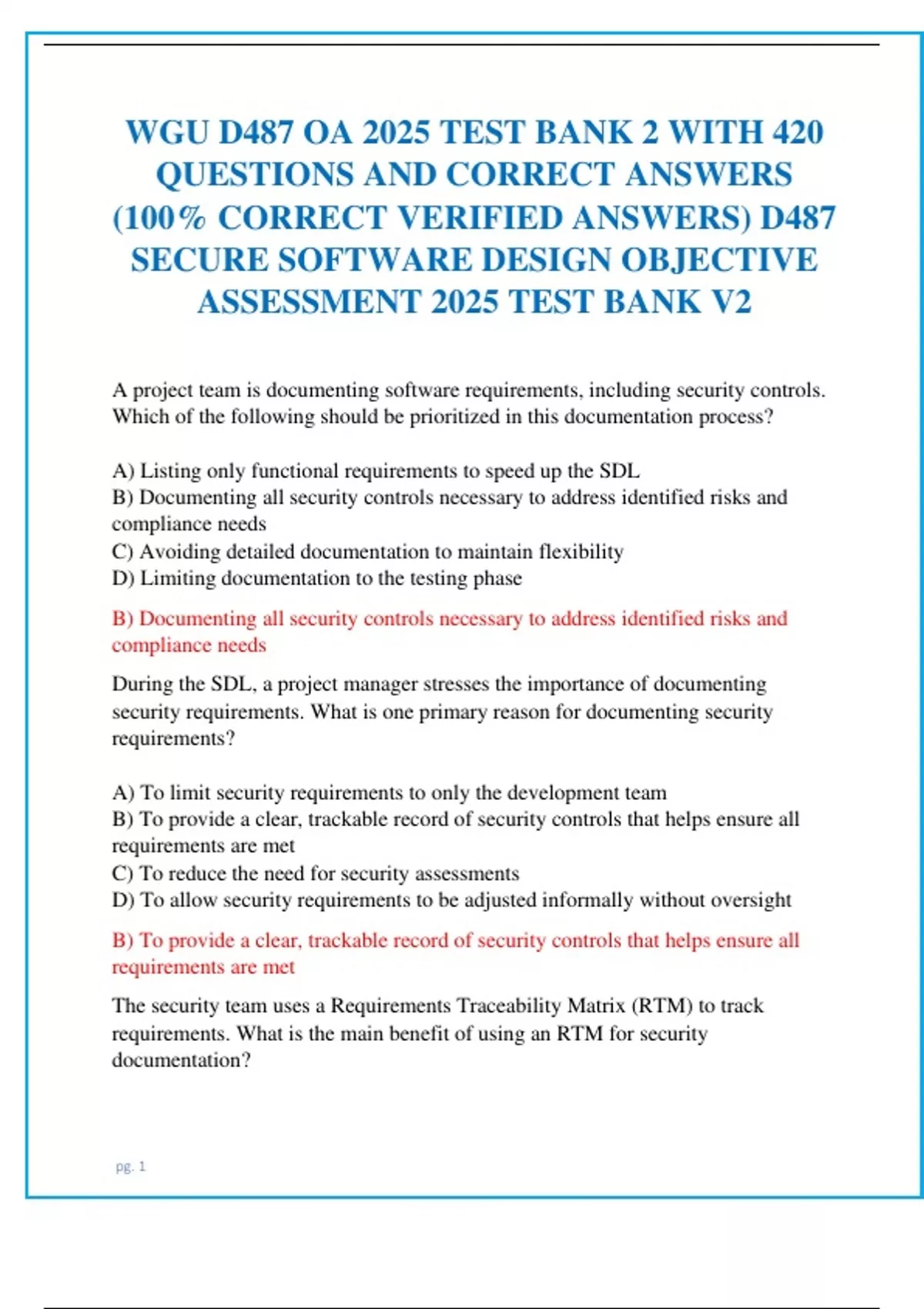 WGU D487 OA 2025 TEST BANK 2 WITH 420 QUESTIONS AND CORRECT ANSWERS (100% CORRECT VERIFIED ANSWERS) D487 SECURE SOFTWARE DESIGN OBJECTIVE ASSESSMENT 2025 TEST BANK V2