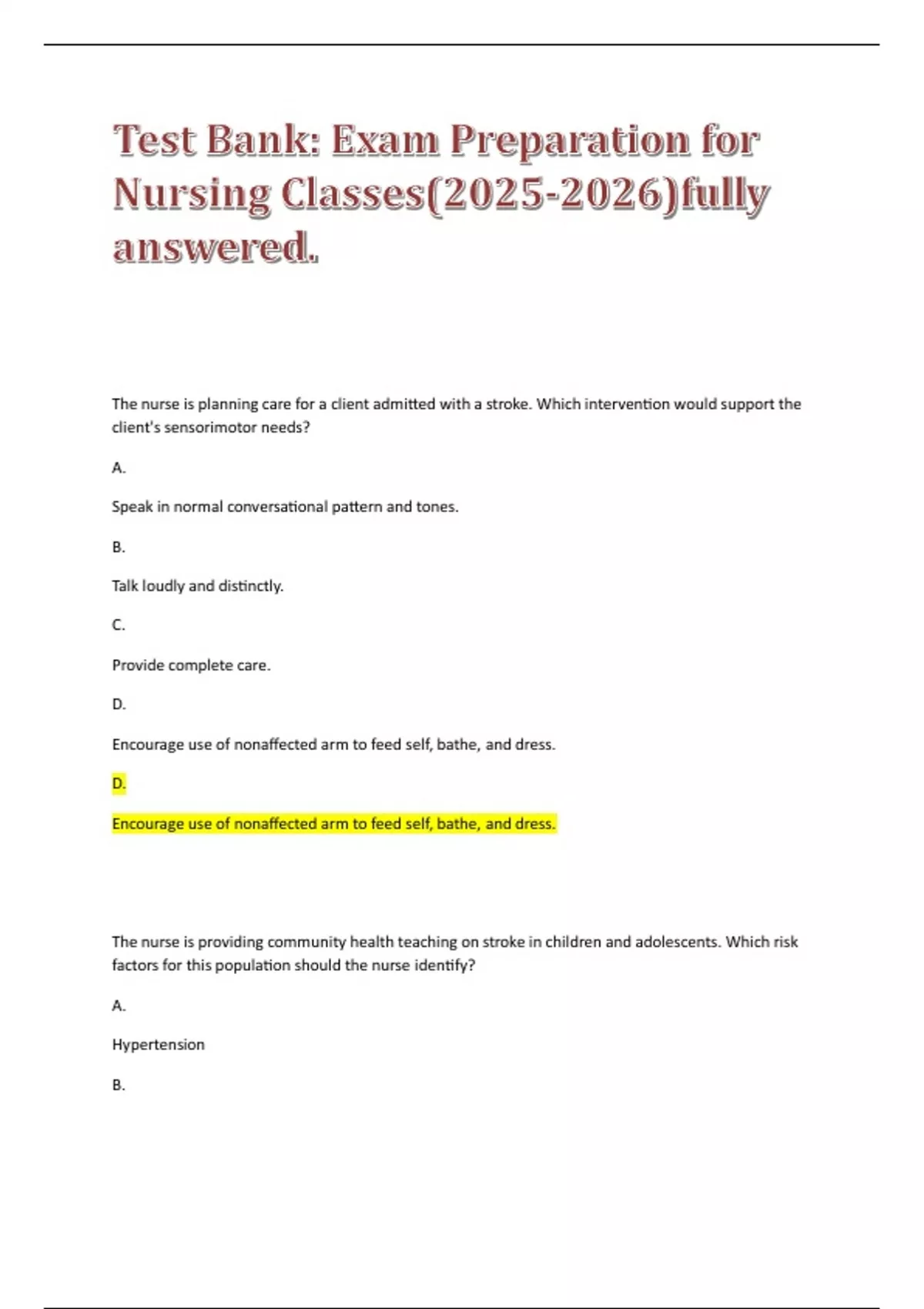 The nurse is planning care for a client admitted with a stroke. Which intervention would support the