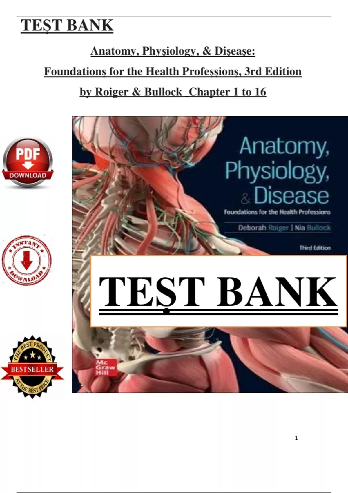 Test Bank - Anatomy, Physiology and Disease, 3rd Edition by Roiger & Bullock, All 16 Chapters Covered - Pdf