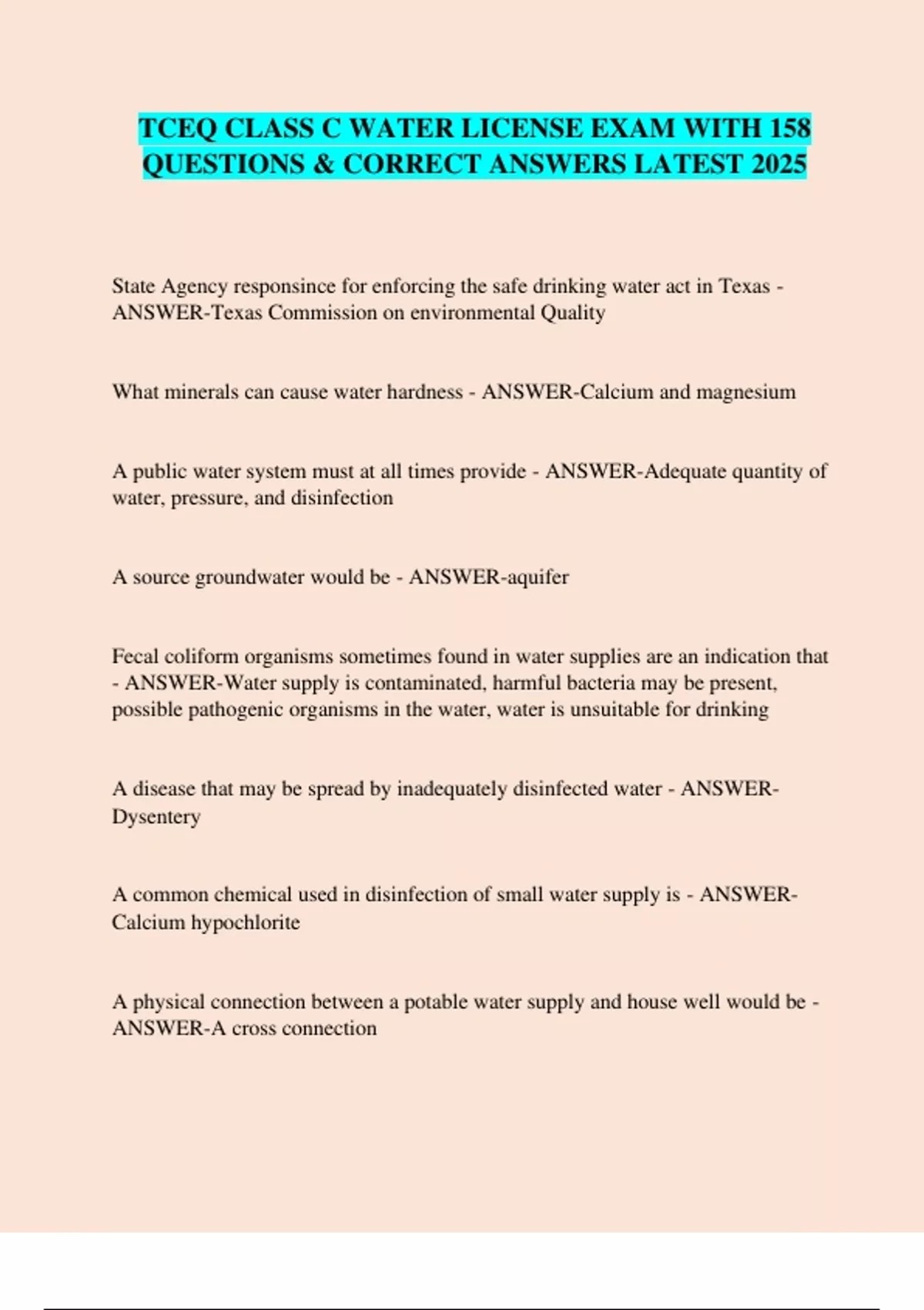 TCEQ CLASS C WATER LICENSE EXAM WITH 158