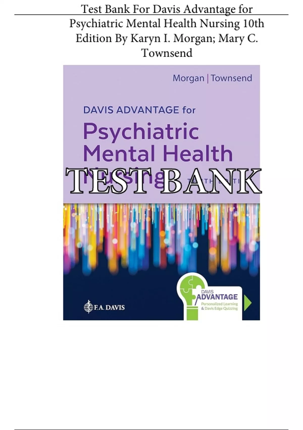 Test Bank for Davis Advantage for Psychiatric Mental Health Nursing 10th Edition by Karyn I. Morgan, (All Chapters Included 1-43).Latest updated version 2025