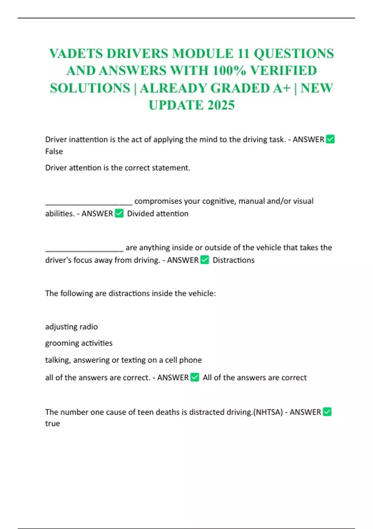 VADETS DRIVERS MODULE 11 QUESTIONS AND ANSWERS WITH 100% VERIFIED SOLUTIONS | ALREADY GRADED A+ | NEW UPDATE 2025