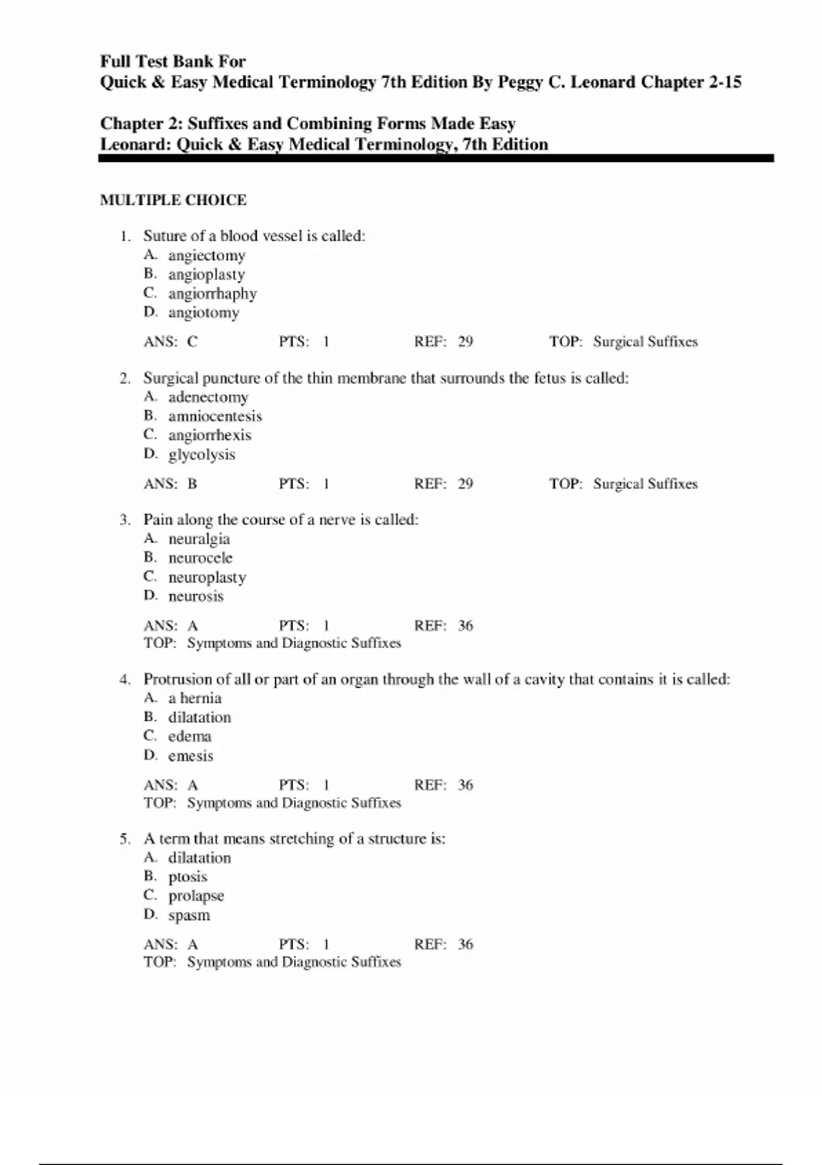 Test Bank For Quick & Easy Medical Terminology 7th Edition By Peggy C. Leonard