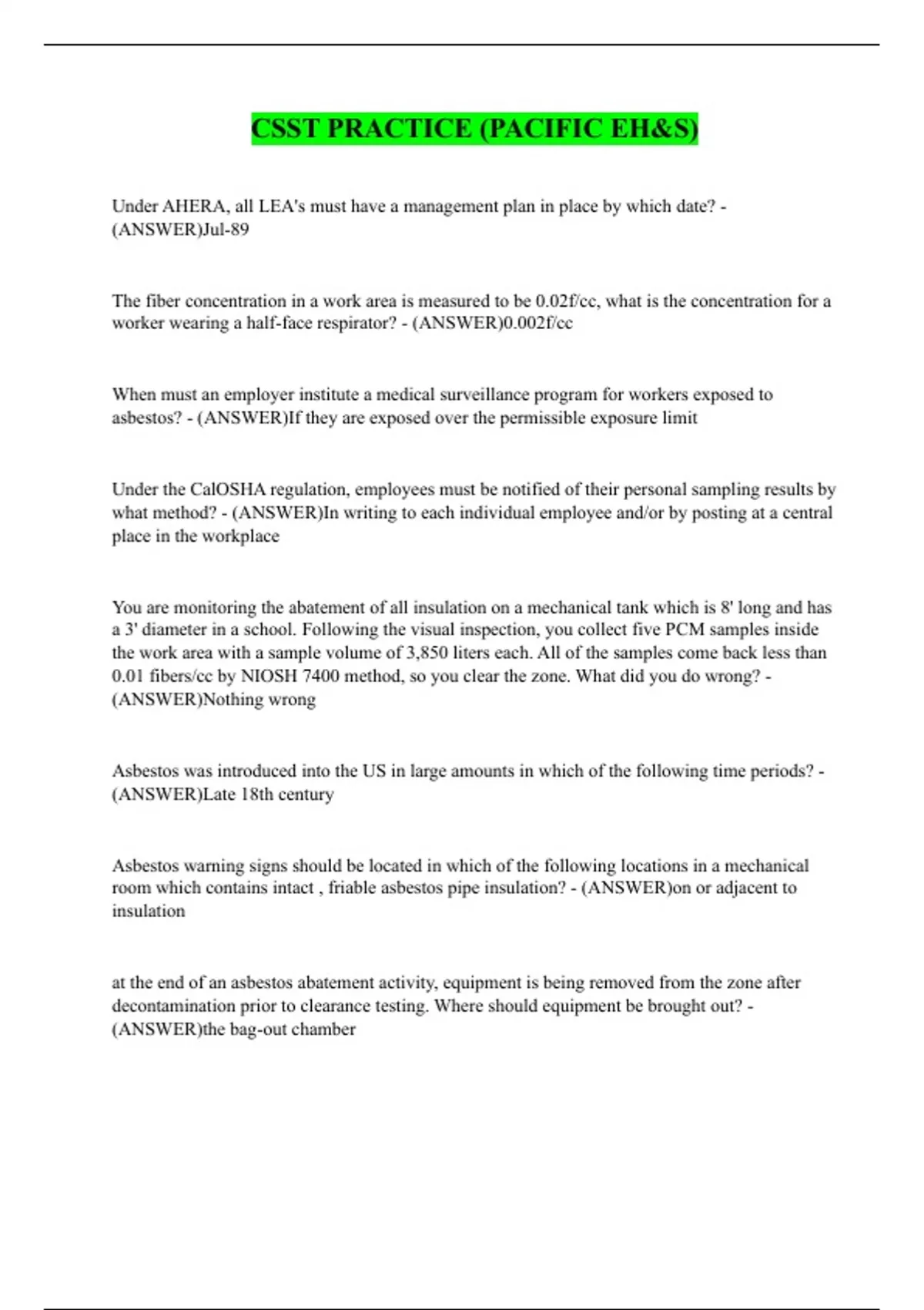 asbestos, per CalOSHA? - (ANSWER)100