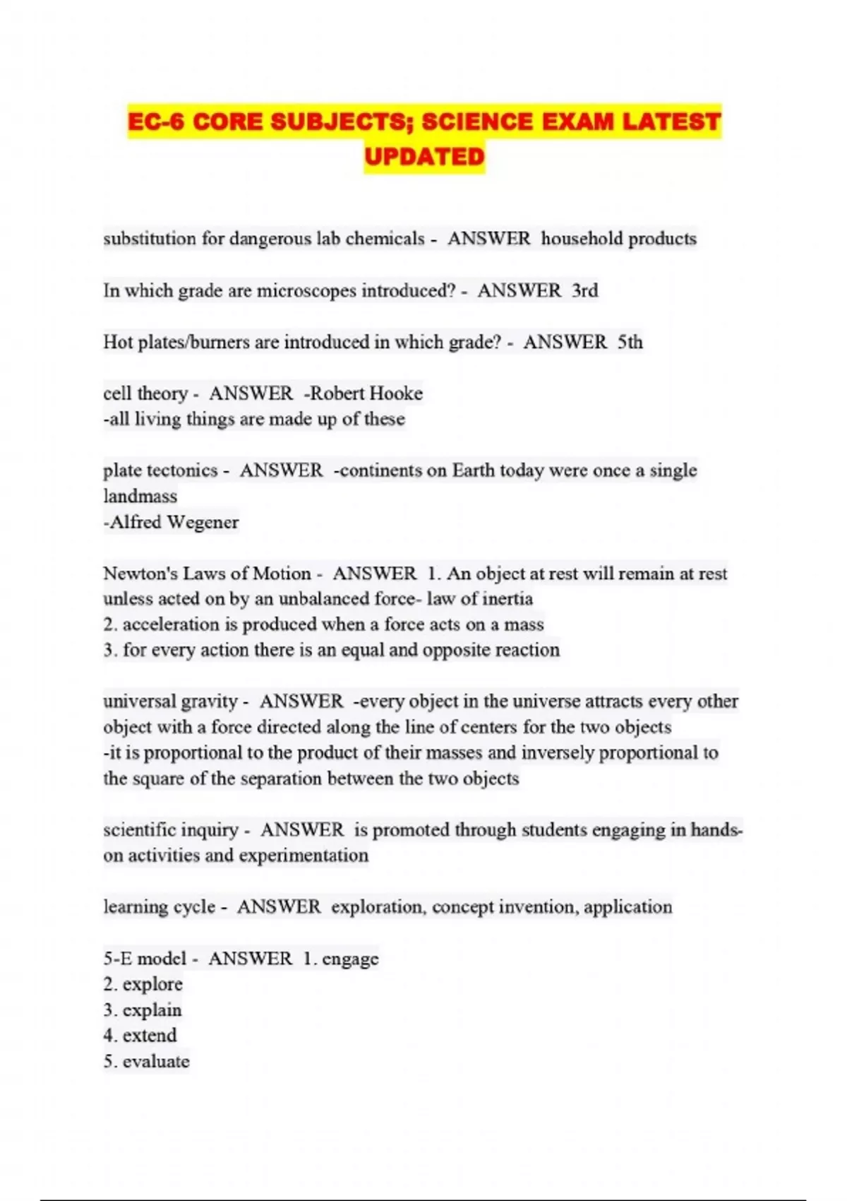 EC-6 CORE SUBJECTS; SCIENCE EXAM LATEST UPDATED