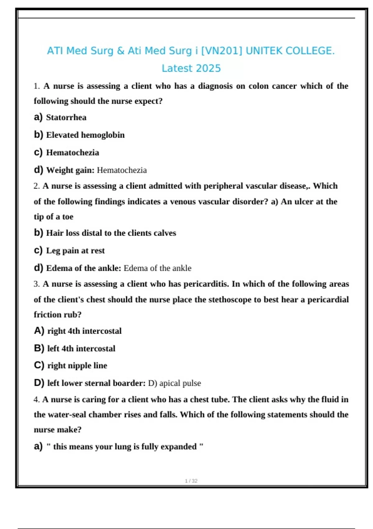 ATI Med Surg & Ati Med Surg i [VN201] UNITEK COLLEGE.