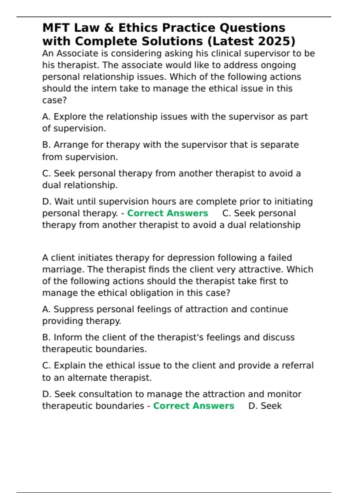 therapeutic boundaries - Correct Answers ✅D. Seek