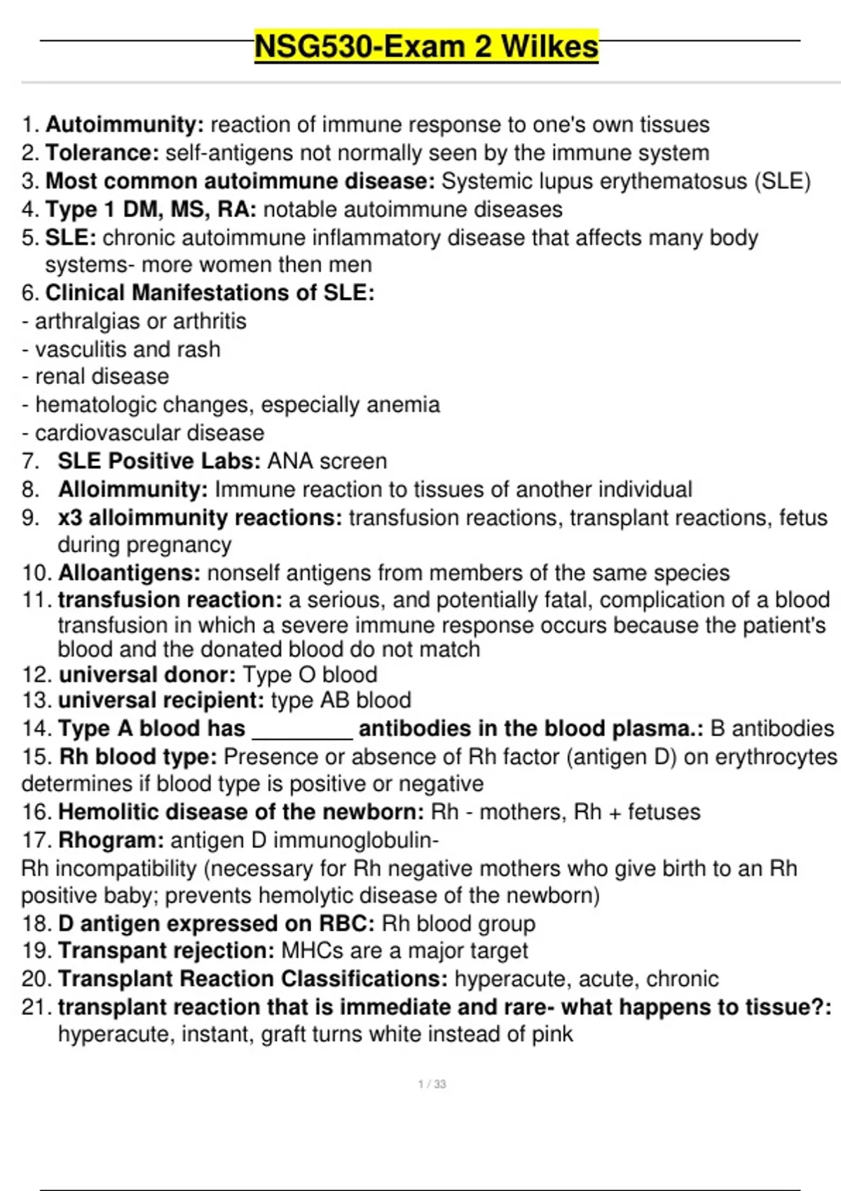 1. Autoimmunity: reaction of immune response to one's own tissues