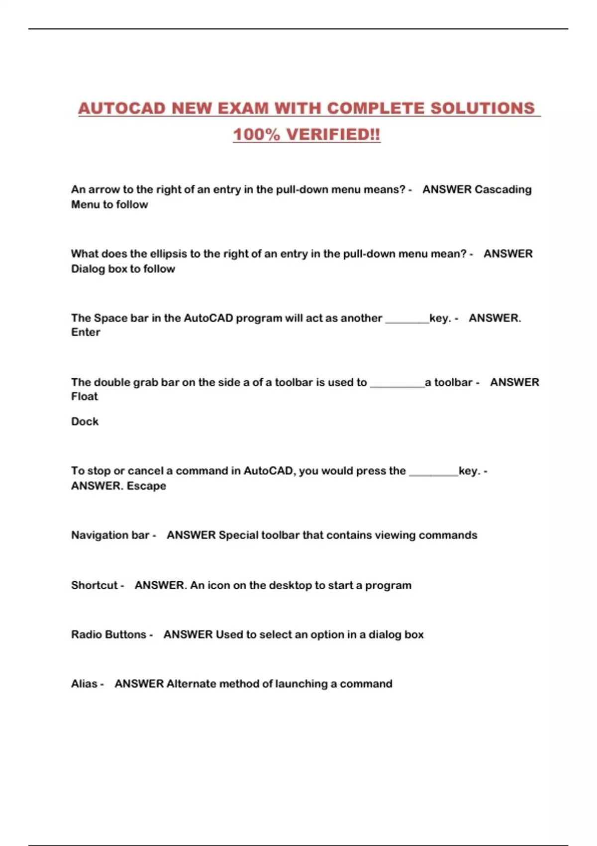 AUTOCAD NEW EXAM WITH COMPLETE SOLUTIONS