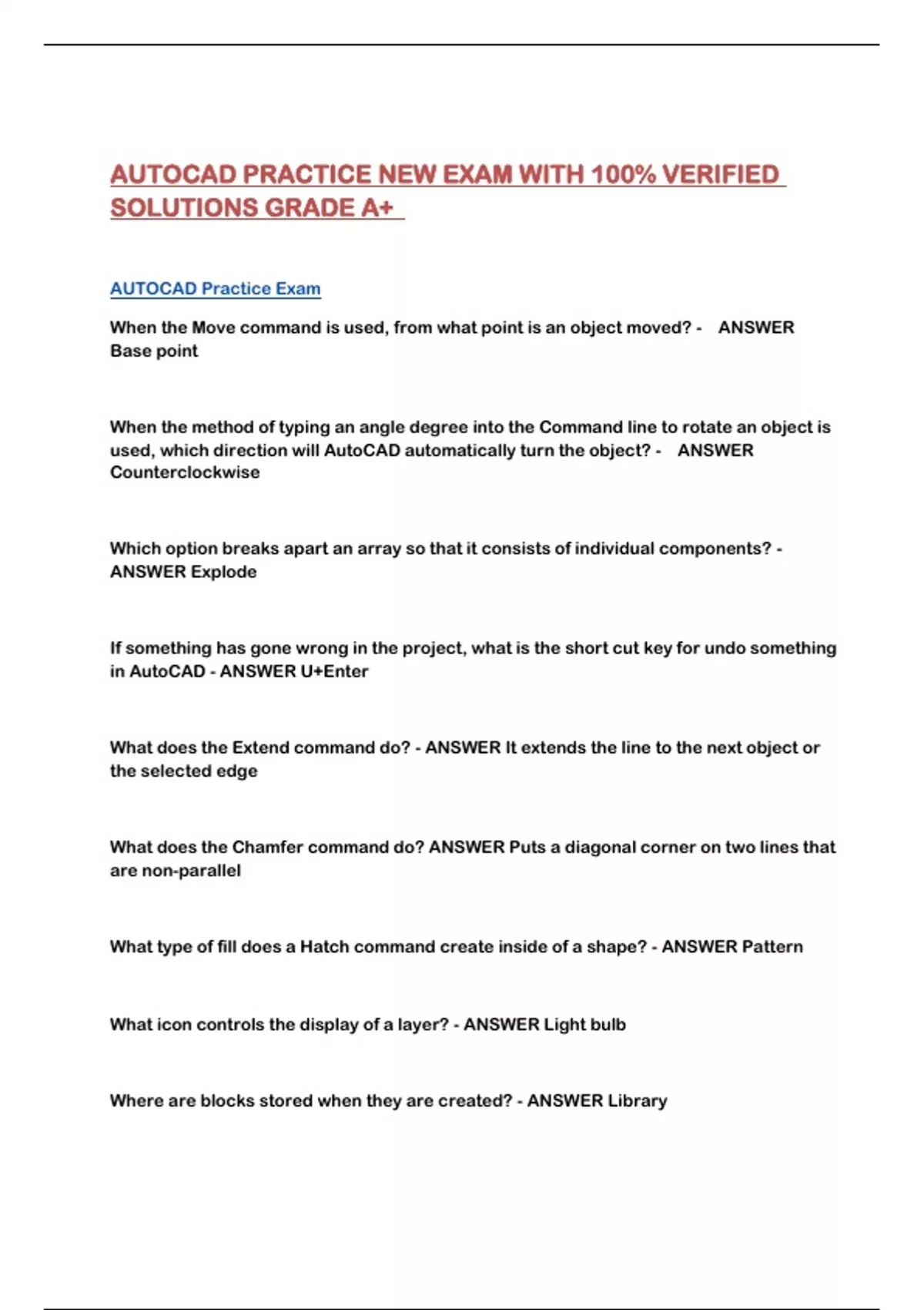 AUTOCAD PRACTICE NEW EXAM WITH 100% VERIFIED SOLUTIONS GRADE A+...