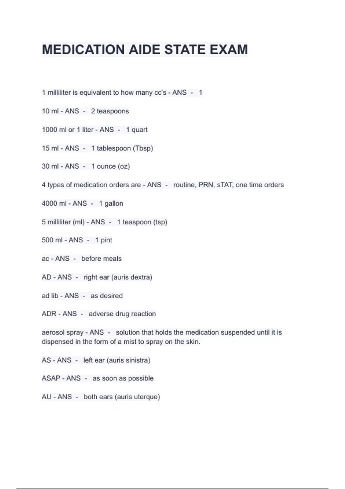 MEDICATION AIDE STATE EXAM