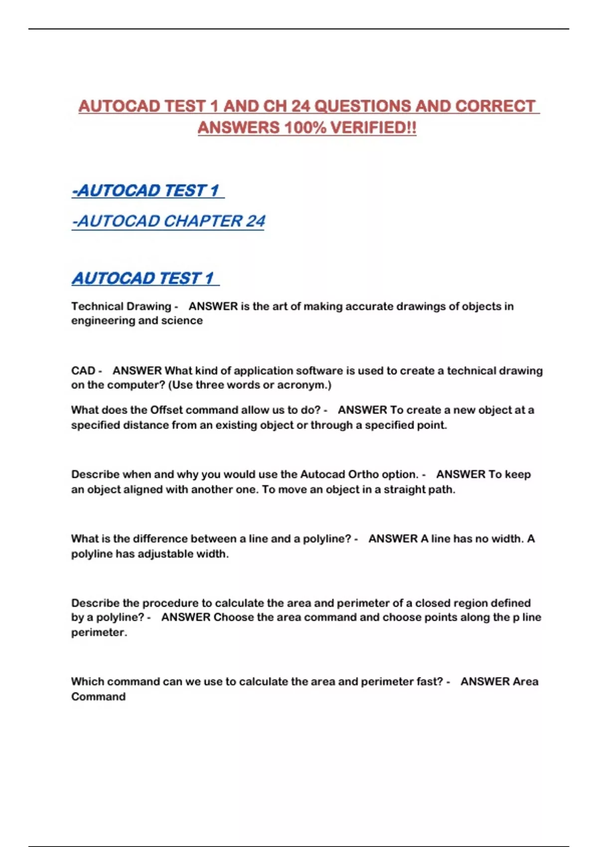 AUTOCAD TEST 1 AND CH 24 QUESTIONS AND CORRECT ANSWERS 100% VERIFIED!!...