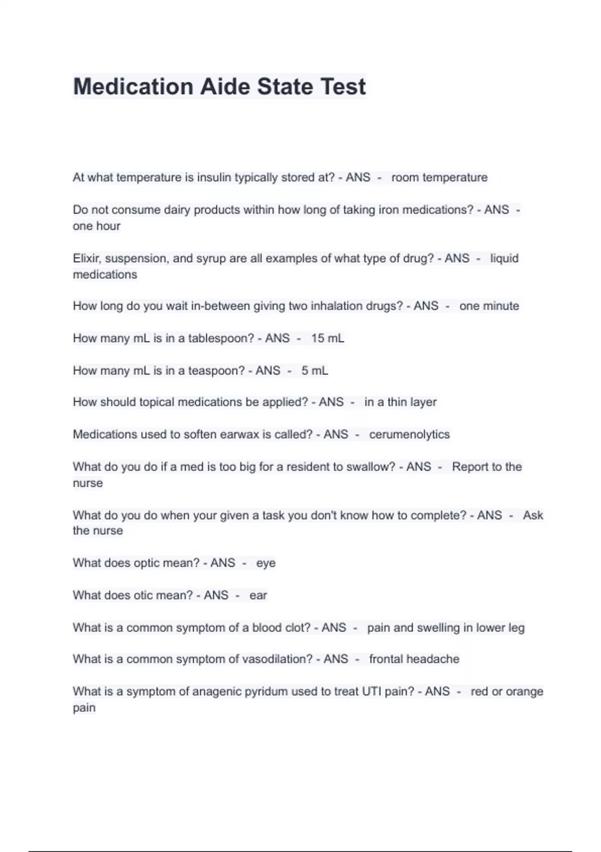 Medication Aide State Test